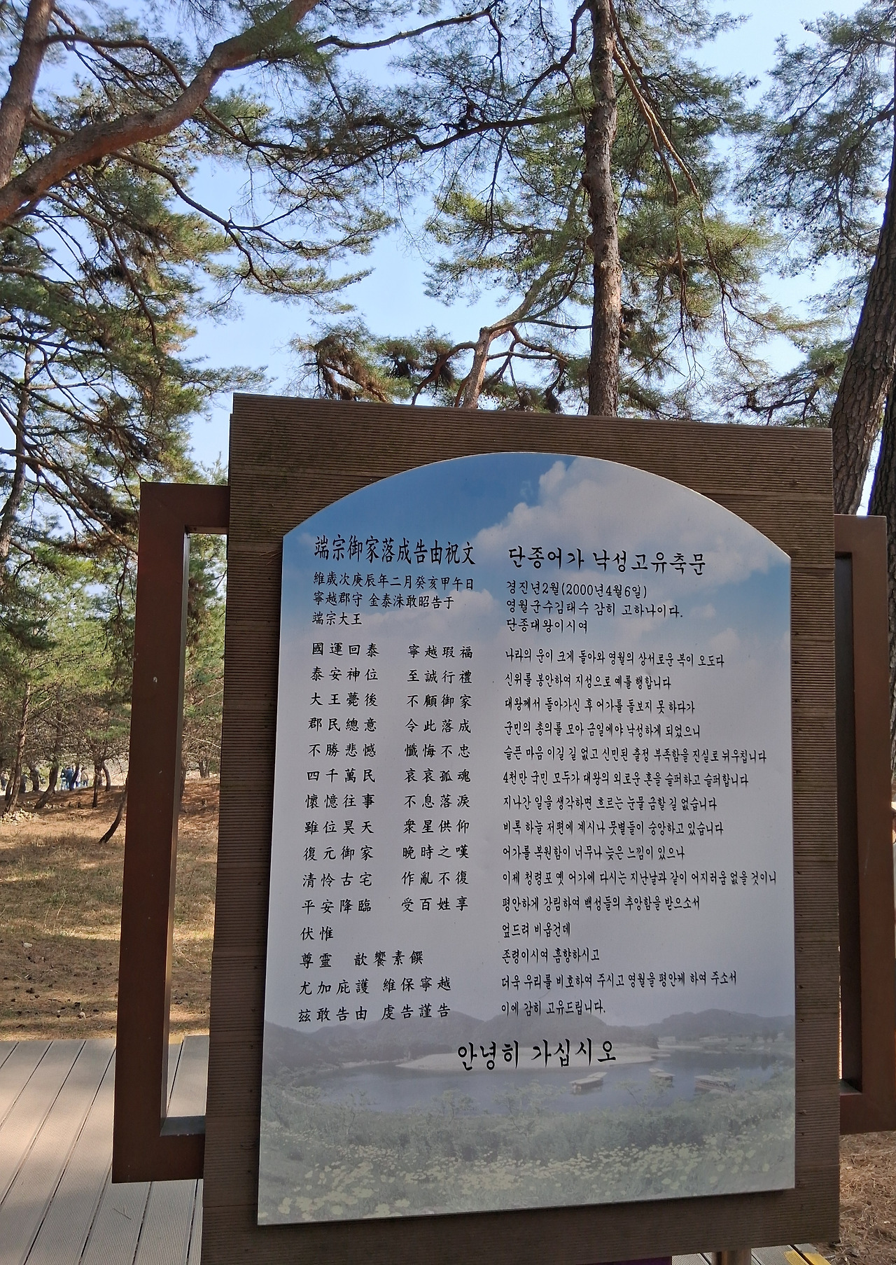 <단종어가 낙성고유축문>이라는 안내가 있어서 담아본다. 홍수로 떠내려가서 다시 지은 단종어소를 기리며 <왕과 사는 남자>가 <왕과 사는 영월>이 되기를 비는 내용이다.