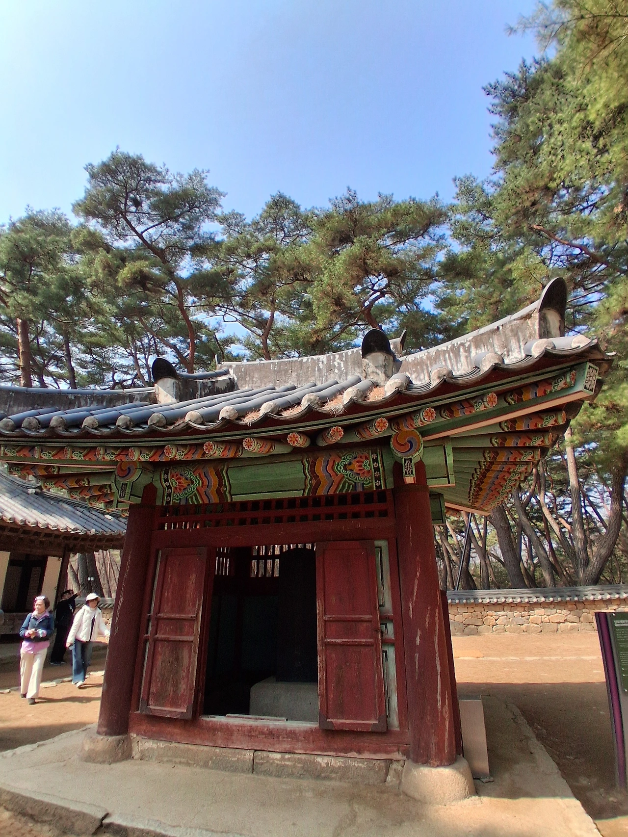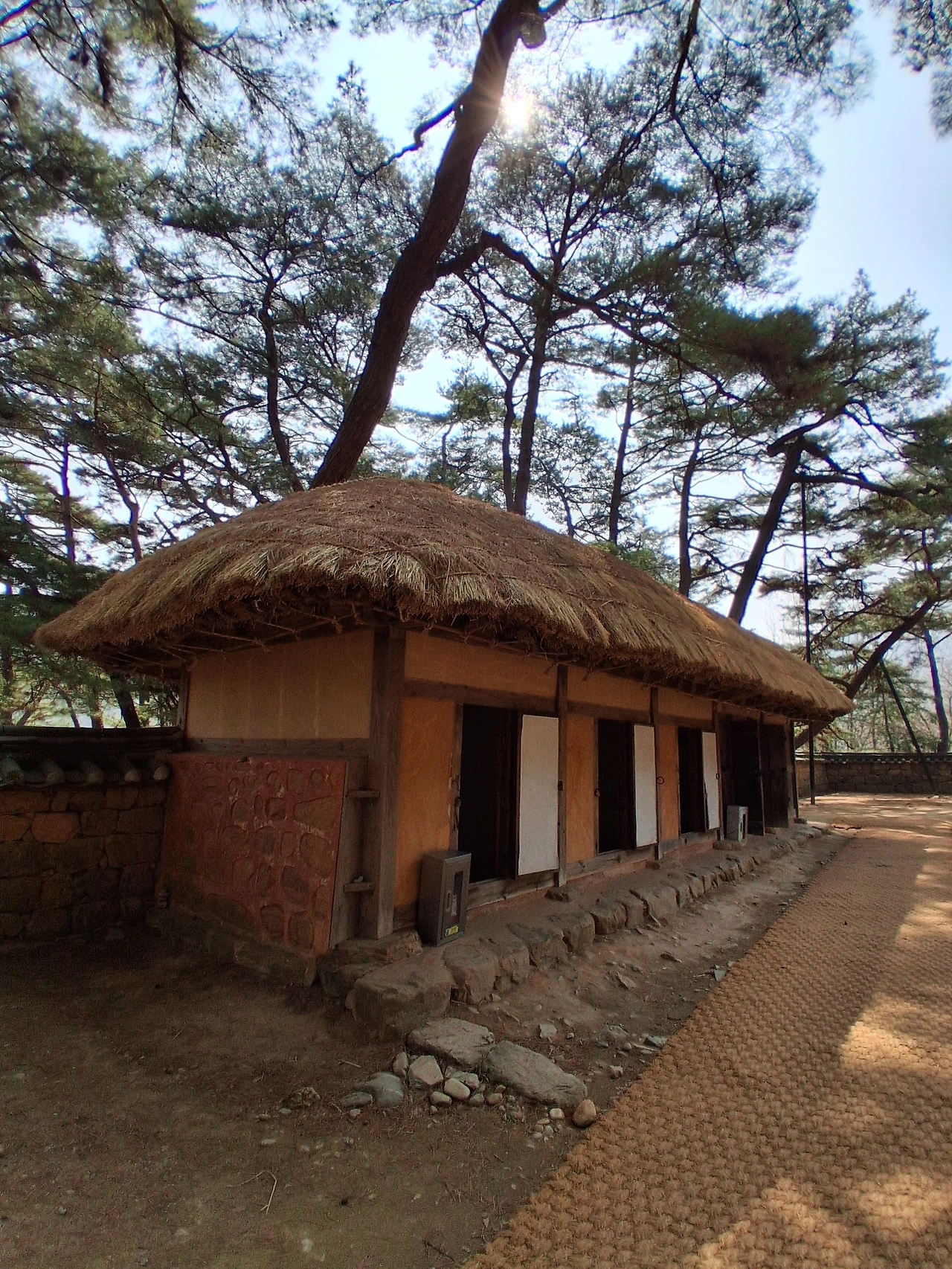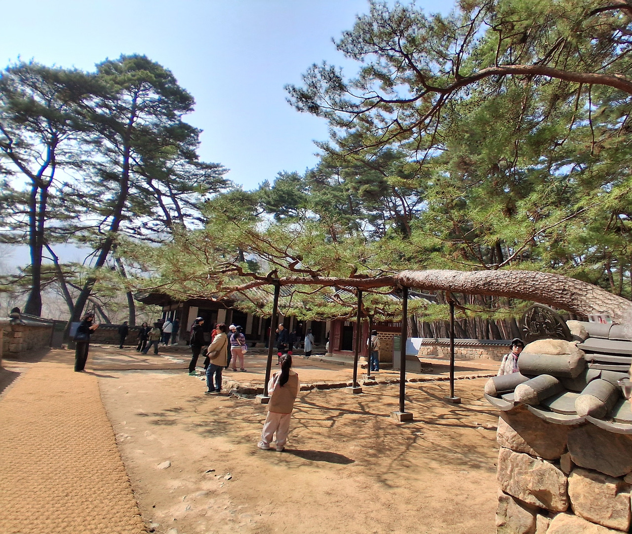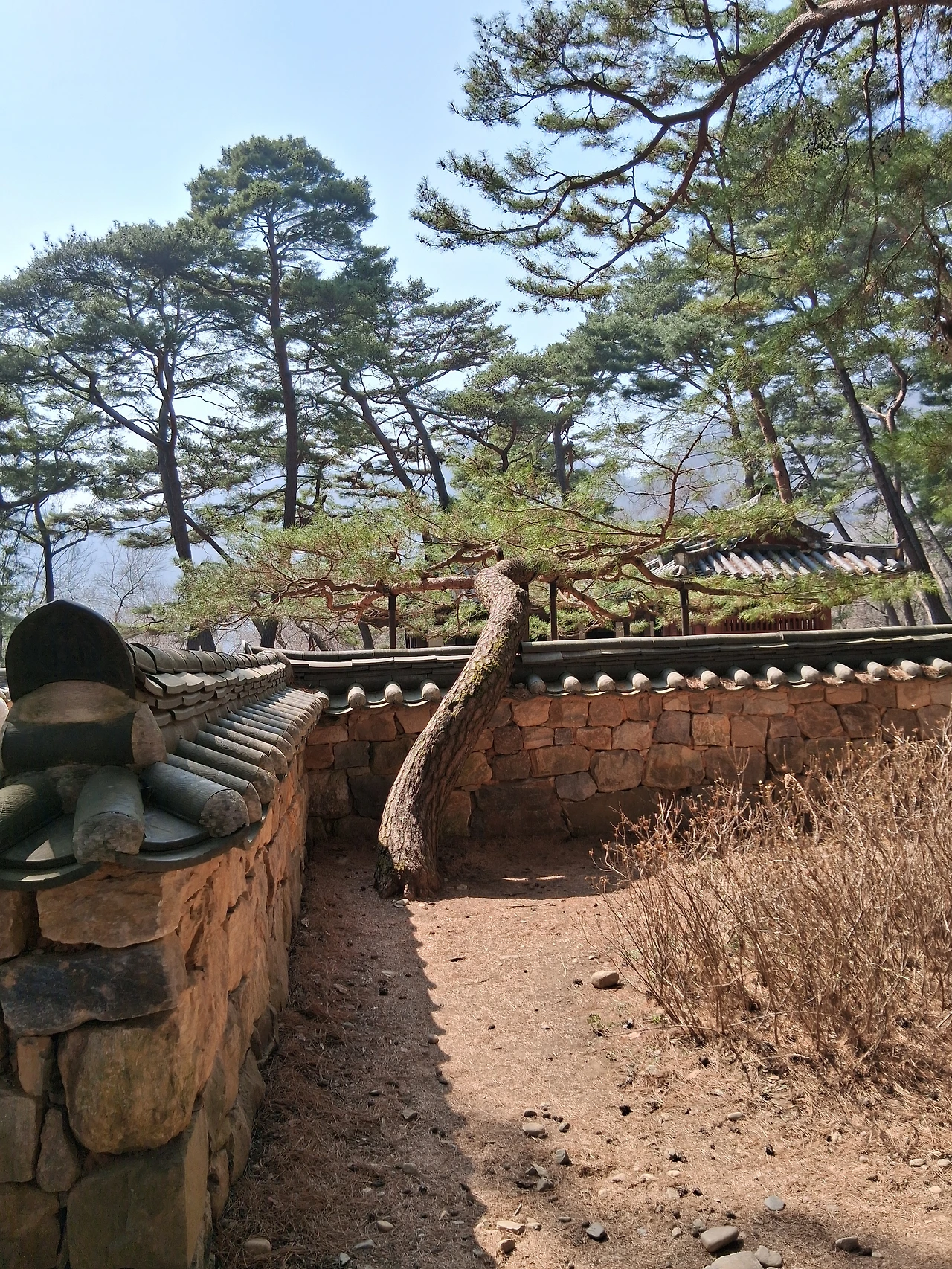 관음송이 하늘로 쭉쭉 뻗은 솔숲길을 걸어 단종어소로 간다. 초가집 한 채와 기와집 한 채가 있다. 담장 위로 휘어진 나무가 꼭 안을 들여다보며 단종왕의 안위를 살폈을 듯한데, 그래서 그런지 <엄흥도 나무>라고 불린단다. 집안은 들여다볼 수 없게 모두 다 닫혀 있어서 열어보는 사람이 없다.