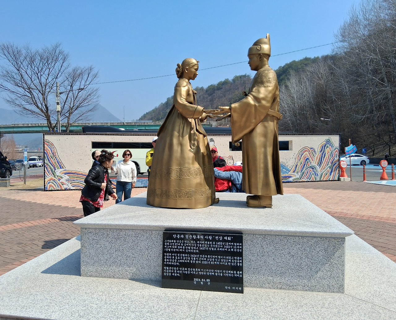 집결지는 <단종과 정순왕후의 사랑 천상재회>라는 동상 앞이어서 기념사진 남기고, 지자체 지원 여행상품이라 벽화 앞에서 단체사진도 남기고 버스에 탑승한다.