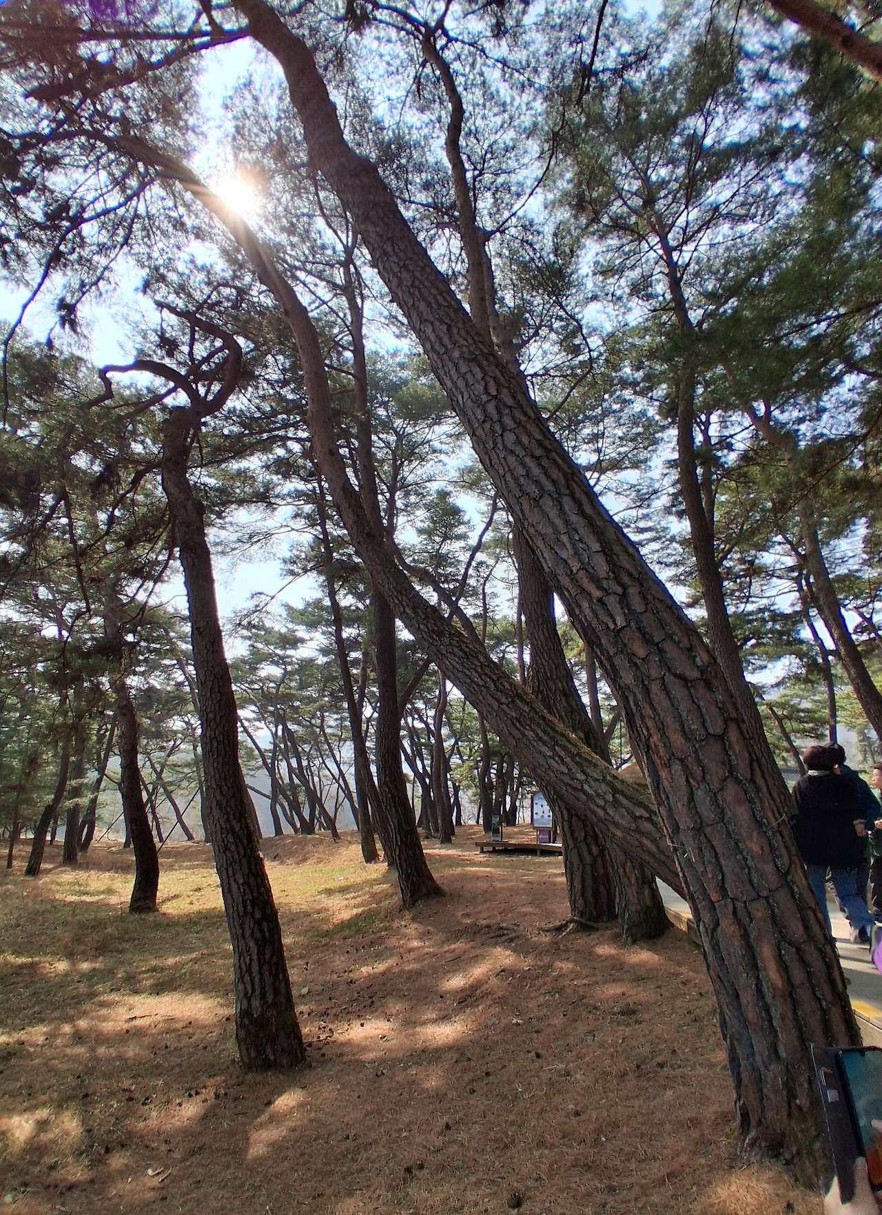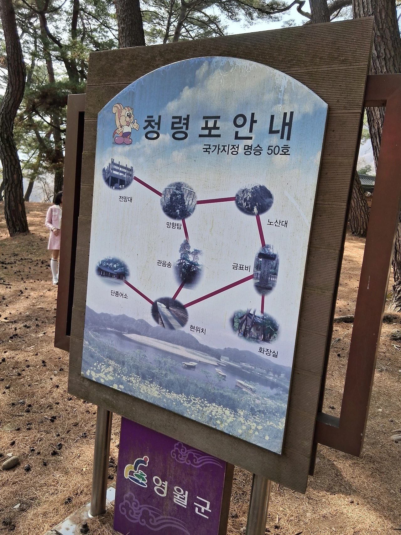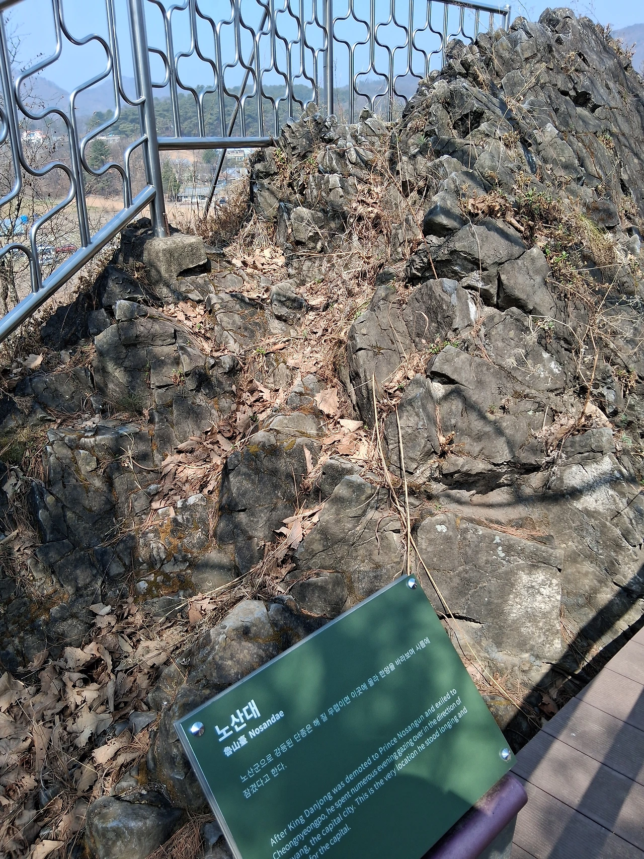 '단종왕의 슬픔을 보고 들었다'는 이름을 가진 '관음송' 숲을 지나 노산대로 올라간다. 단종왕이 한양을 바라보며 슬픔을 달랬다는 '노산대'는 울퉁불퉁한 커다란 바위가 놓여있다. 노산대에 올라갈 때도 내려갈 때도 청령포를 빙 둘러서 나가는 서강이 내려다 보인다.