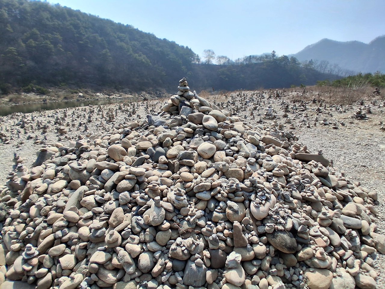 "저 돌탑들에는 사람들의 소원이 이루어질 날을 손꼽아 기다리고 있을 것이다. 무슨 소원이 담겨 있을까?"