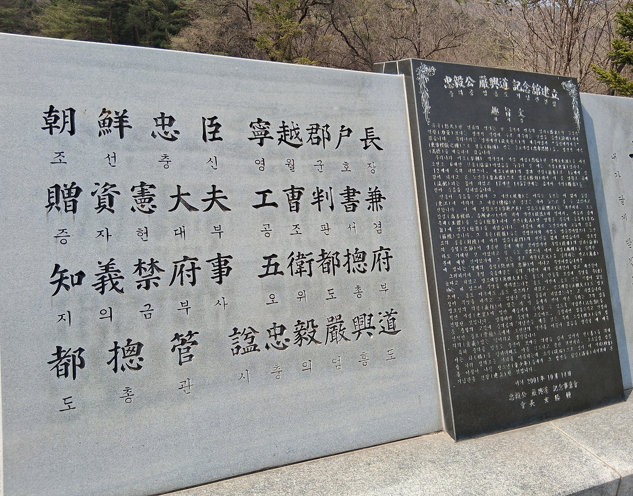 서부시장주차장으로 돌아와 버스를 타고 영화 <왕과 사는 남자>에서 단종왕 노산군에 대한 충절의 표상으로 나오는 엄흥도 기념관으로 이동한다. <충의공엄흥도기념관>이라는 이름표가 있다.