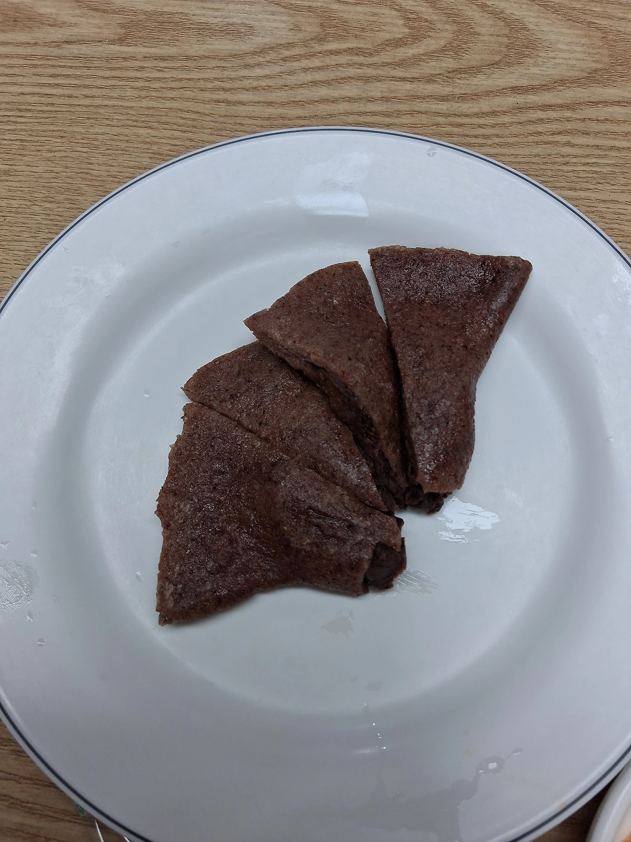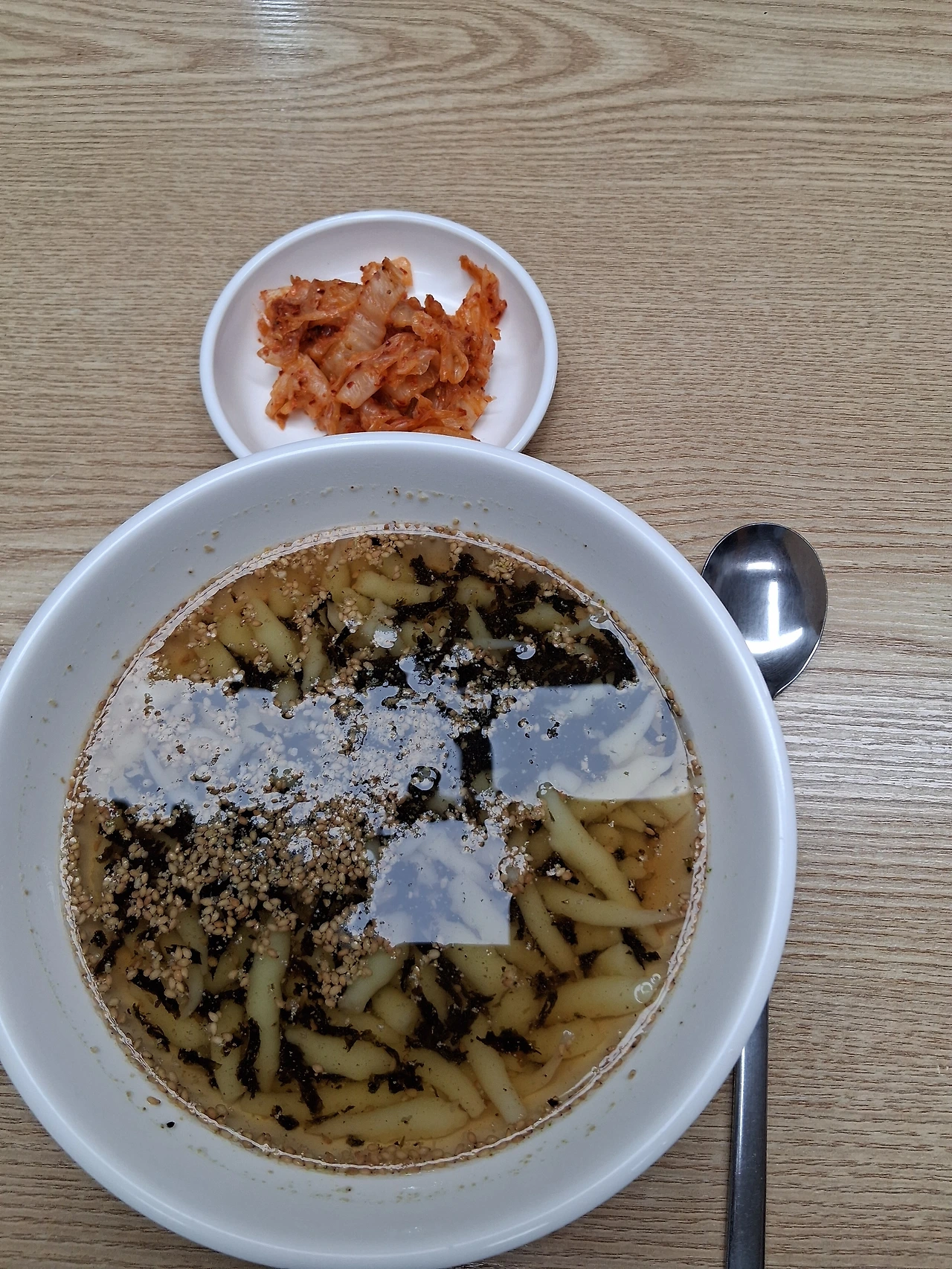 영월은 올챙이국수와 메밀전, 수수부꾸미 등 전종류가 특산품이라고 한다. 다른 것을 먹을래도 마땅한 식당이 눈에 안 띈다. 식당 안으로 들어가서 점심식사를 하려는데 초입에는 사람들 줄이 아주 길다. 한참 기다렸다가 나는 혼자라서 같은 여행사로 온 여자분 둘과 한 테이블에 앉는다. 그분들이 모둠전1(특)을 시키기에 고루 조금씩 맛을 보고, 나는 올챙이국수와 수수부꾸미만 1개 주문해서 먹는다. 올챙이국수는 영월 특산품이라고는 하나 맛이 밍밍했고 수수부꾸미는 팥소가 가득 들어 있어서 먹고 난 뒤까지 고소한 맛이 입안에 가득 퍼진다.
