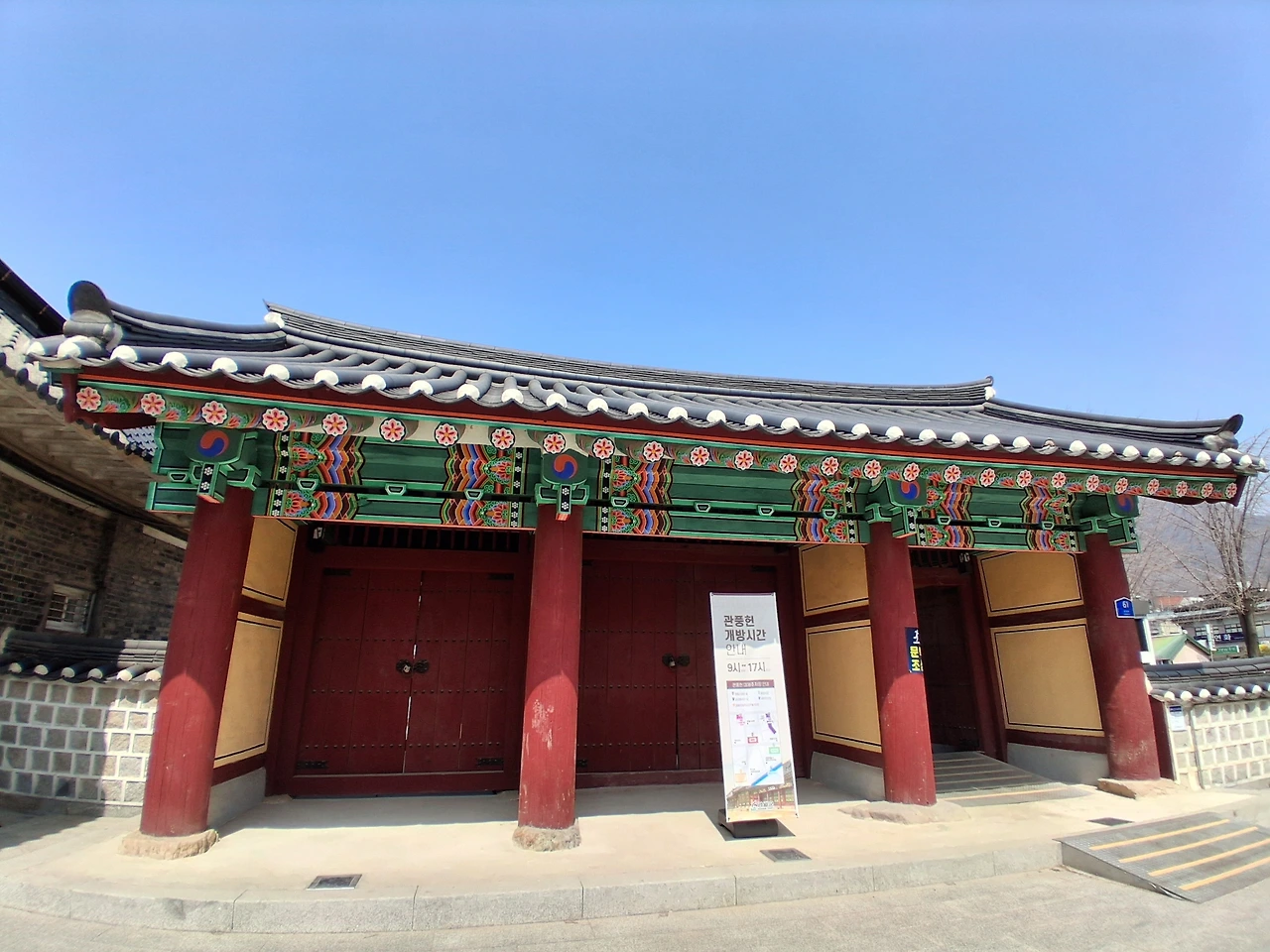 조금 있으니까 우리 가이드님이 관풍헌 대문 안으로 들어오신다. 함께 이야기 나누며 살펴보고 있는데 대문 옆에서 관광안내 리플릿을 나눠주고 있는 여자 안내원이 끼어들어서 관풍헌 설명을 해주신다.
