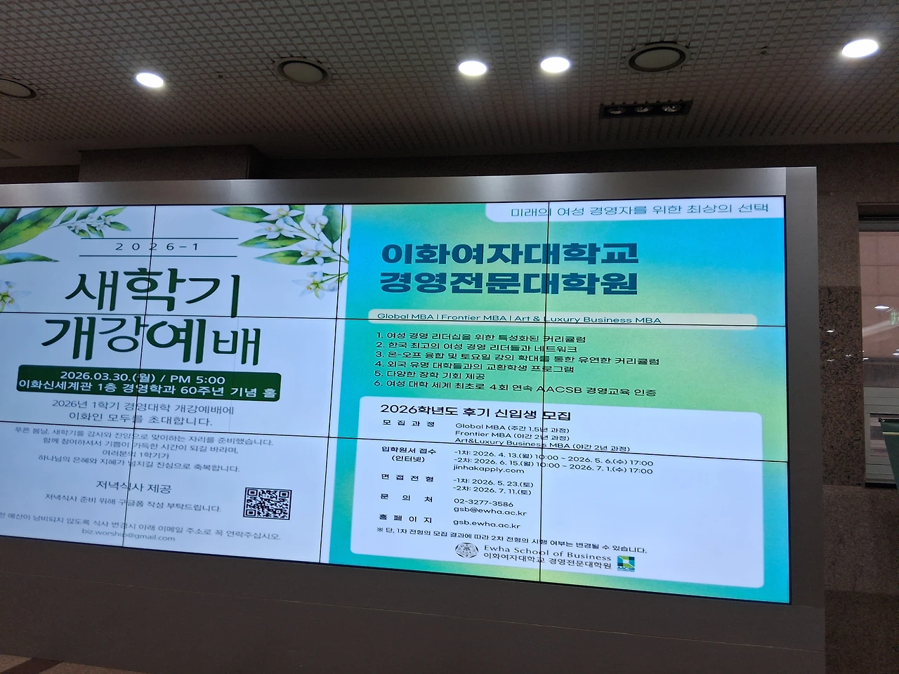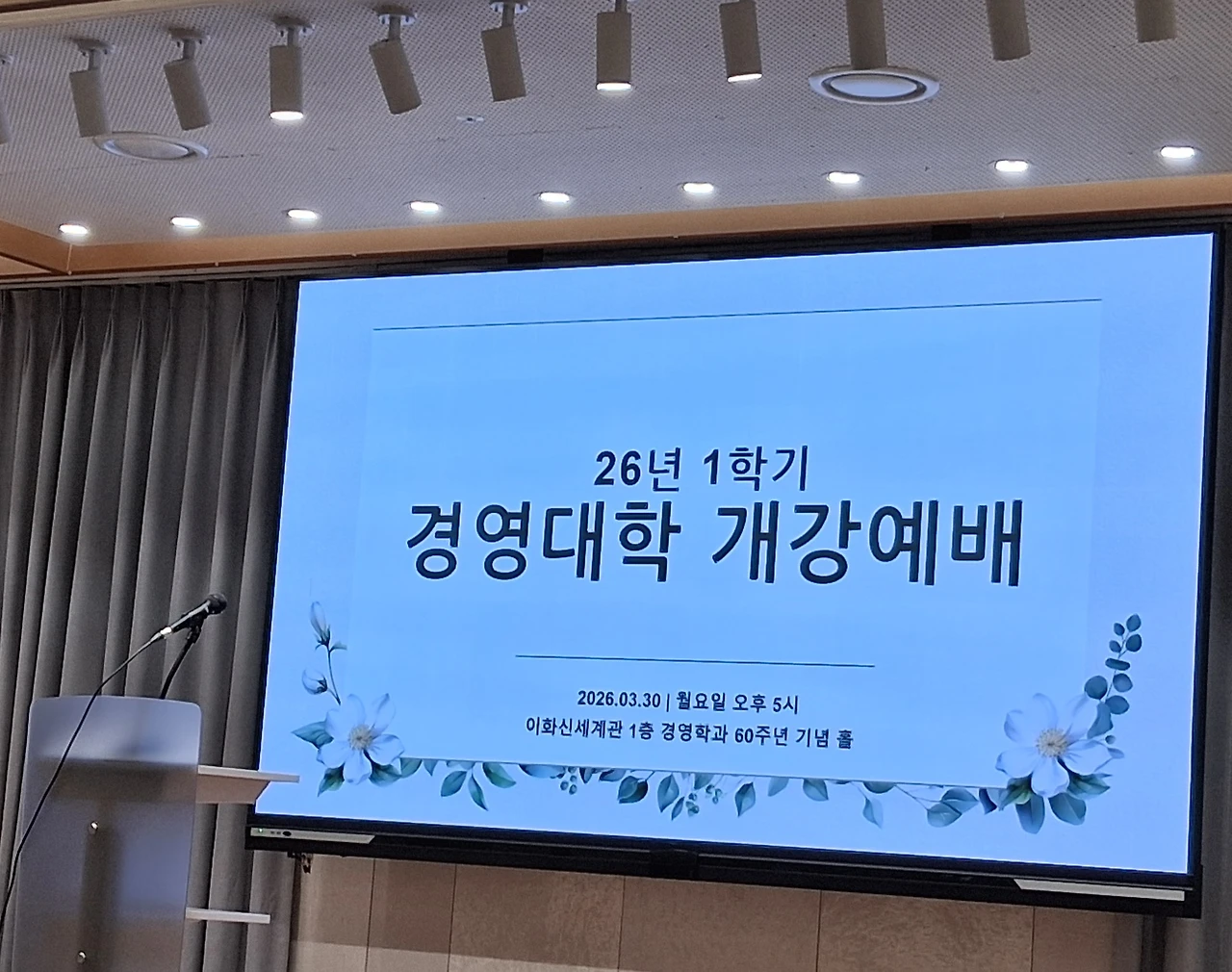 2026년 1학기 이화 경영대학 개강예배에 처음으로 참석을 한다. 저녁 5시에 시작하는 거라서 집이 수원인 나는 잘 참석을 못했다. 우리 이경 21기 동기들은 학교에 자주 나가고 또 모임에도 적극적이어서 몇 명이긴 하지만 꾸준히 참석해오고 있다.