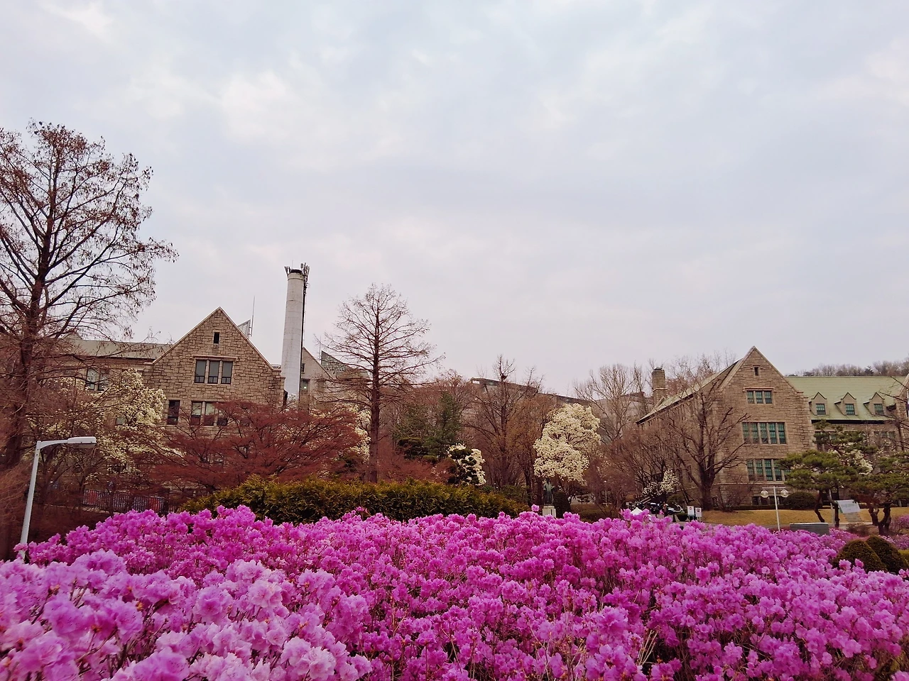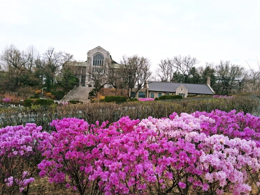 나는 오늘도 일찍 이화 교정에 도착해서 봄꽃이 만발한 동산을 한 바퀴 돌았다. 진달래가 만발하고 목련, 매화, 산수유, 개나리도 활짝 피어서 교정이 너무나 아름다웠다.