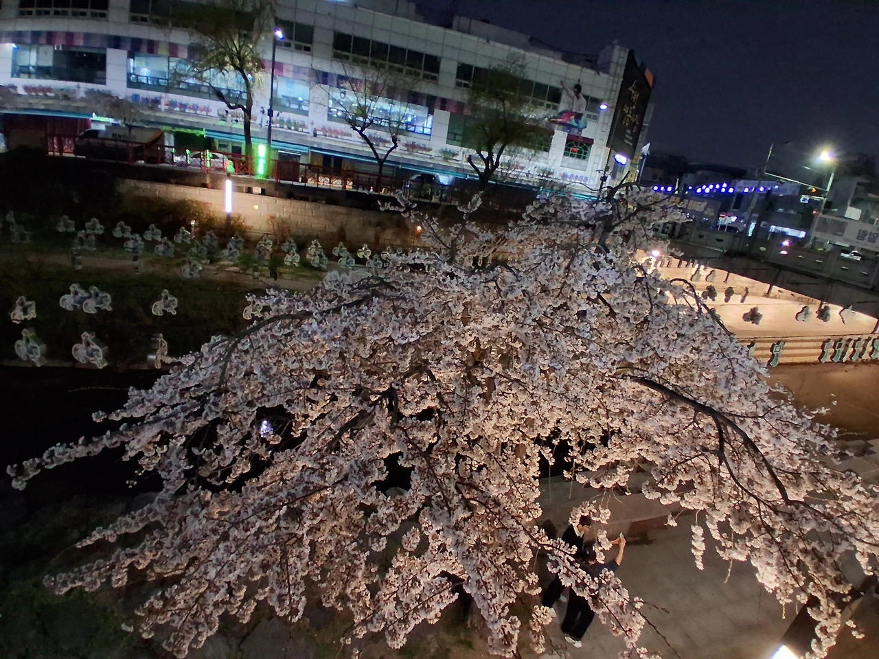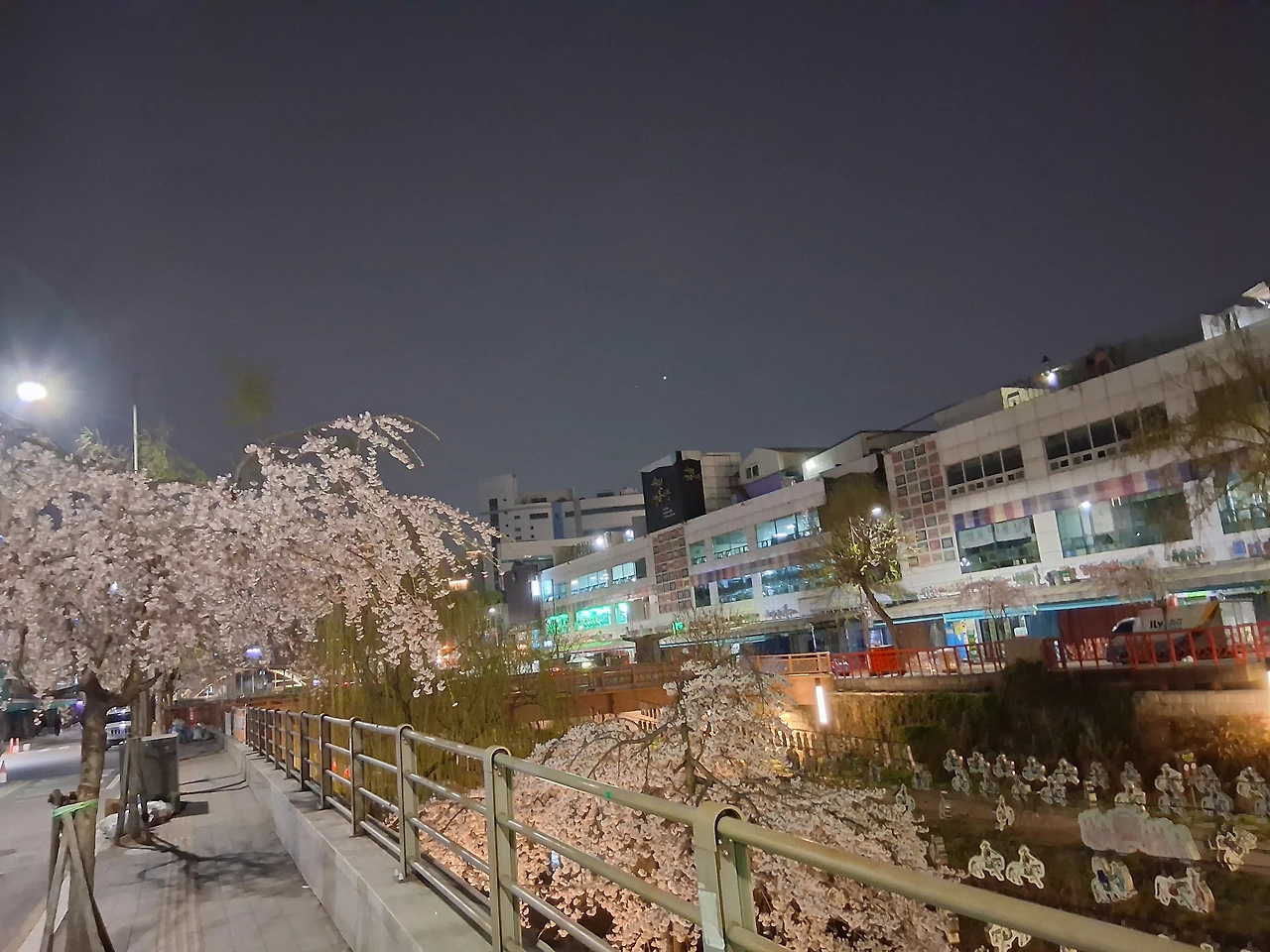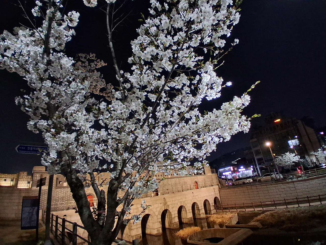 영화 보고 돌아오는 길은 수원화성성곽길 아랫길로 간다. 곧 수원천이 나오고 재래시장도 나온다. 야경 속 개나리와 벚꽃과 수양버들도 예쁘다. 꽃구경 실컷 하고 영화도 보고 요즘 내가 문화생활을 최고 수준으로 누리고 사는 것 같아 그저 감사하기만 하다.