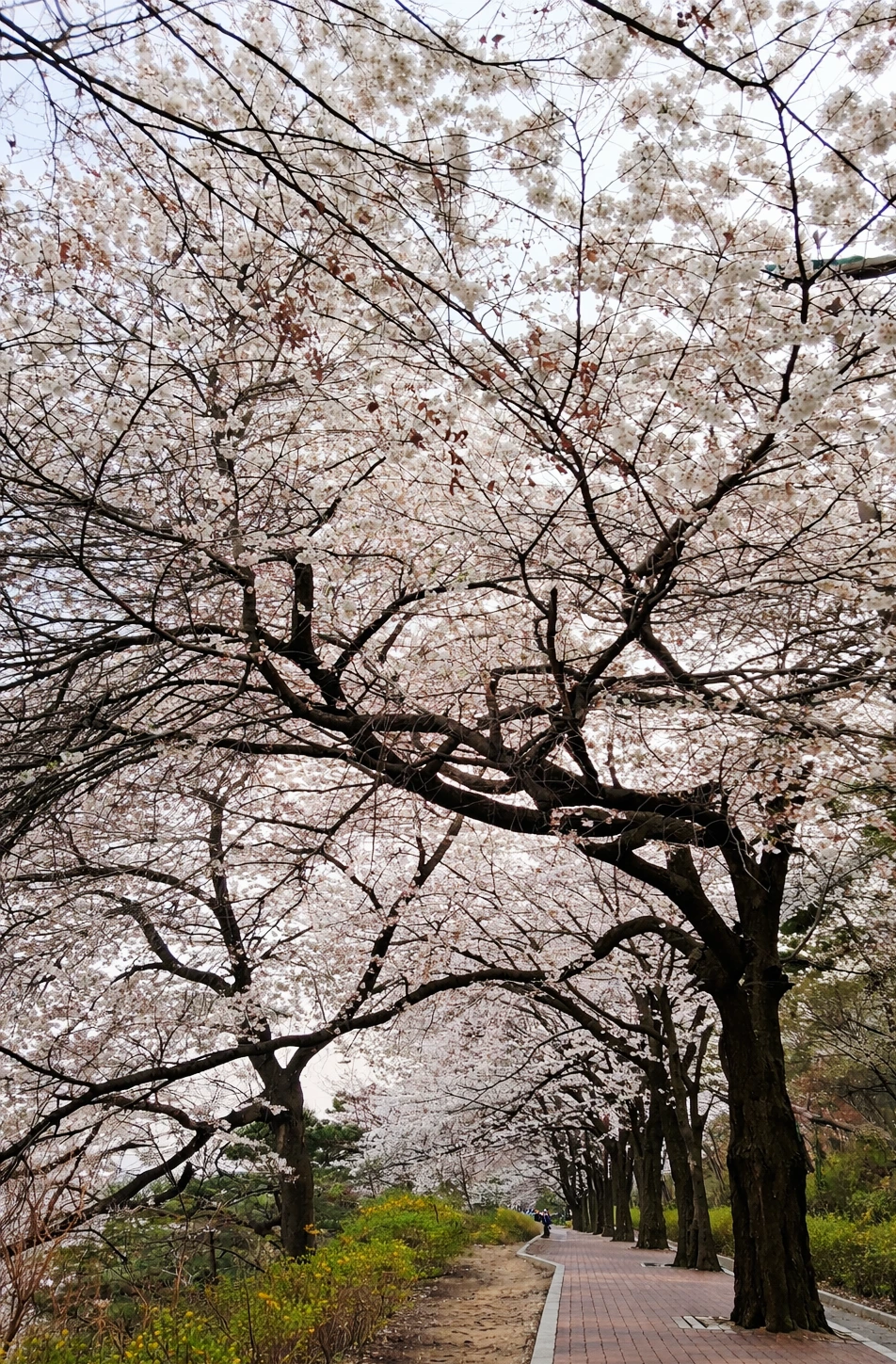 나는 이곳을 자주 오고 있어서 벚꽃길을 잘 안다. 수원중앙도서관 근처까지 피어있는 벚꽃길을 두루 걸어보고 사진도 많이 찍는다. 옛경기도청 쪽도 오래된 벚나무가 많이 있지만 건물이 꽃과 함께 잡혀서 사진을 찍으면 안 이쁘다. 그런데 이곳은 어떻게 찍어도 멋스럽다.