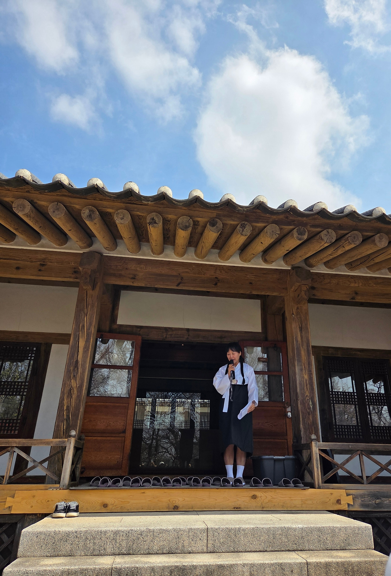 이경동창회 정현주 수석 부회장님이 오늘의 이화박물관 해설사님이시다. 하양 저고리, 검정 치마, 옛날 한복을 곱게 차려입고 한옥 앞에 서니 모두들 돌계단에 신발을 벗어놓고 따라서 안으로 들어간다. 이화역사관 안에는 이화의 모든 것이 다 기록으로 남겨져 있다. 스크랜튼 선교사님이 이화학교를 세운 이래로 최초인 것들이 많다. 보구여관은 여성을 보호하는 집으로 간호학과의 시초가 되었고, 여기를 거처 유학을 다녀와 최초의 김에스더 의사가 탄생하기도 했다.