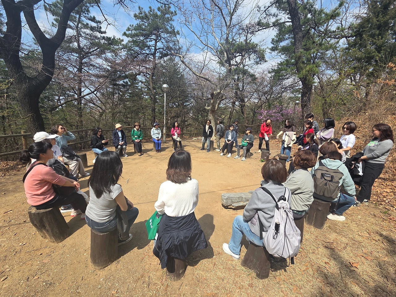 모두가 통나무 의자에 앉아서 설명을 듣는데 기도의 자리라 그런지 마음이 숙연해진다.