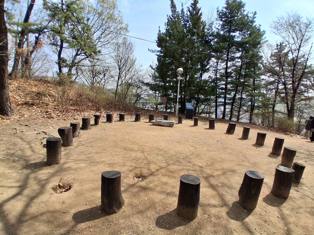 동그란 원 모양으로 통나무 의자가 놓여 있다. 팔복동산 안내문이 있는 쪽에는 돌의자가 놓여있다. 아마도 이 돌의자에 앉아서 기도를 드렸을 것이다. 우리도