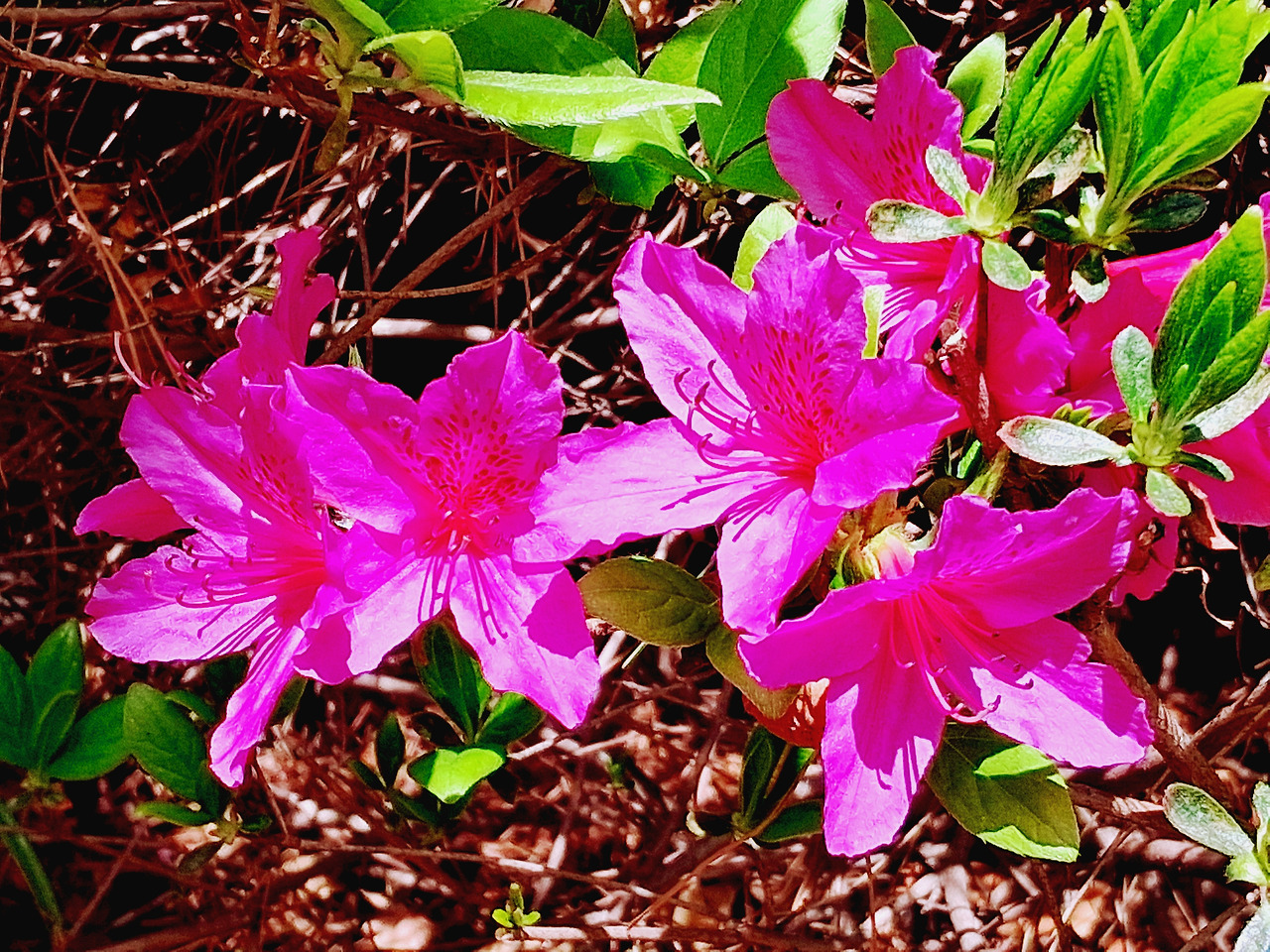 아파트 앞에는 백목련, 자목련도 만개를 했고, 산수유 한그루도 꽃이 활짝 피었다. 한일타운 버스 정류장에는 철쭉이 이제 막 피어나고 있다. 예뻐서 담는다. 대추골도서관 오가는 길 벚꽃길 산책, 행복한 시간이다.