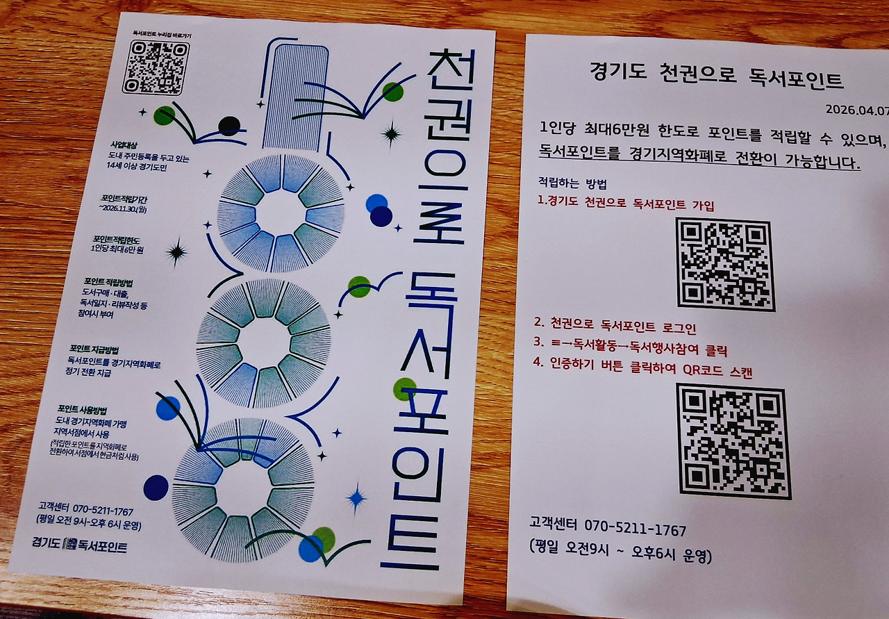 수업 끝나고는 대추골도서관 담담자가 <경기도 천권으로 독서포인트>라는 걸 소개하기에 가입한다.