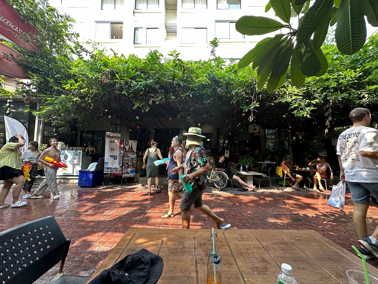 그나저나 오늘 송크란으로 거리가 물총싸움으로 난리가 날 텐데, 바이닐 조심해서 가져가세요.”