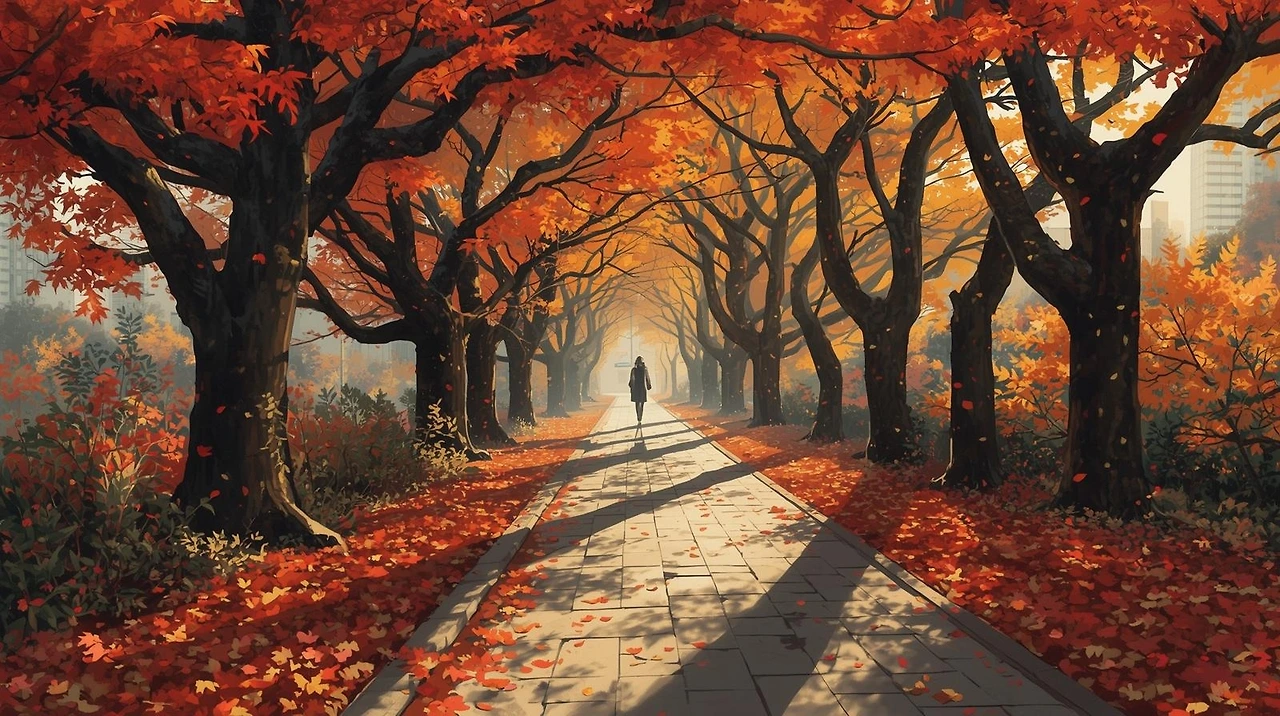 찬란한 가을색 나무마다 마지막 빛을 매달고, 쓸쓸히 다가올 계절을 고요히 알린다.