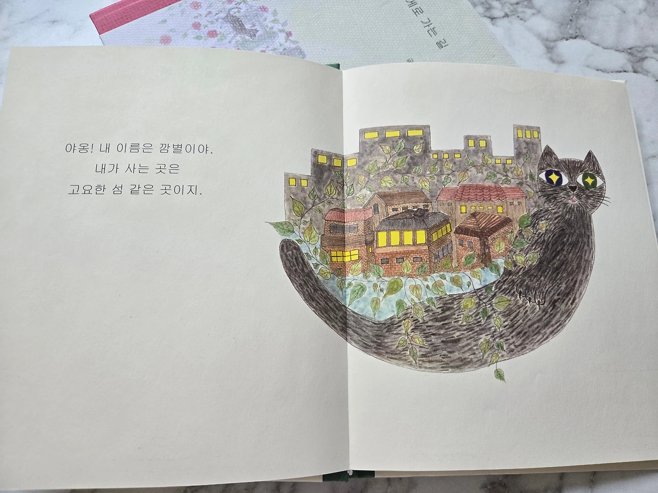 집은 낡은 지붕을 필사적으로 붙잡은 채, 마치 자신도 떠나기 싫다는 듯 삐걱이는 소리를 냈다. 그 옆의 오래된 감나무도 마지막 잎새 한 장까지 놓지 않으려는 듯 애처롭게 몸을 떨었다. 가을이면 달콤한 감을 주렁주렁 매달아 주던, 수많은 햇살과 바람을 견뎌온 이 작은 고양이의 오랜 친구. 깜별이는 이들이 느끼는 막막함과 이별의 아픔이 그대로 전해져 오는 듯했다. 코끝을 스치는 낯선 화학약품 냄새는 익숙한 비린 생선 냄새를 덮었고, 왠지 모를 불안감이 작은 심장을 짓눌렀다.