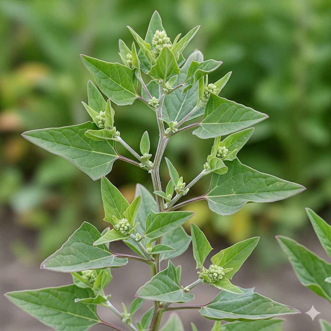 여름 한가운데, 담장 옆 그늘과 햇살의 경계가 느슨해진다. 그 사이에서 명아주가 조용히 키를 올린다. 줄기는 마디마다 잔가지가 갈라지고, 잎 표면엔 분가루처럼 옅은 흰빛이 앉아 있다. 꽃은 화려하지 않다. 아주 작은 녹색 알갱이들이 이삭처럼 모여 흔들린다. 요란함 대신 분량으로 말하는 식물. 눈에 띄지 않아도 어느새 키를 키운다.