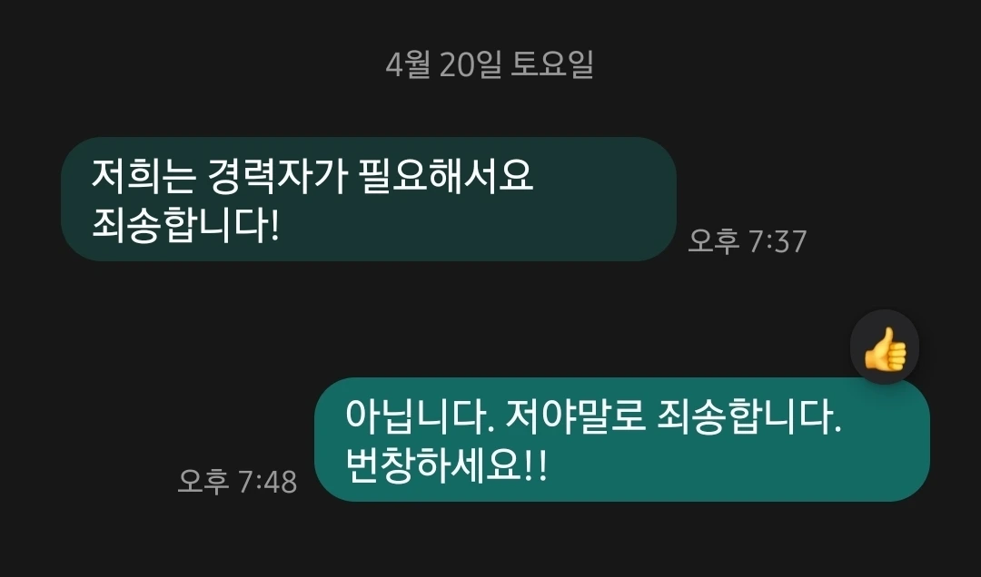 그러나 사장 님의 반응은 "죄송합니다"였다.