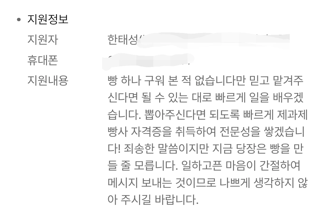 말 그대로 빵 하나 구워 본 적 없는 내가 '주임제빵사' 공고에 지원했다. 미친 짓이라는 건 알았고, 맨 정신에 이랬다.