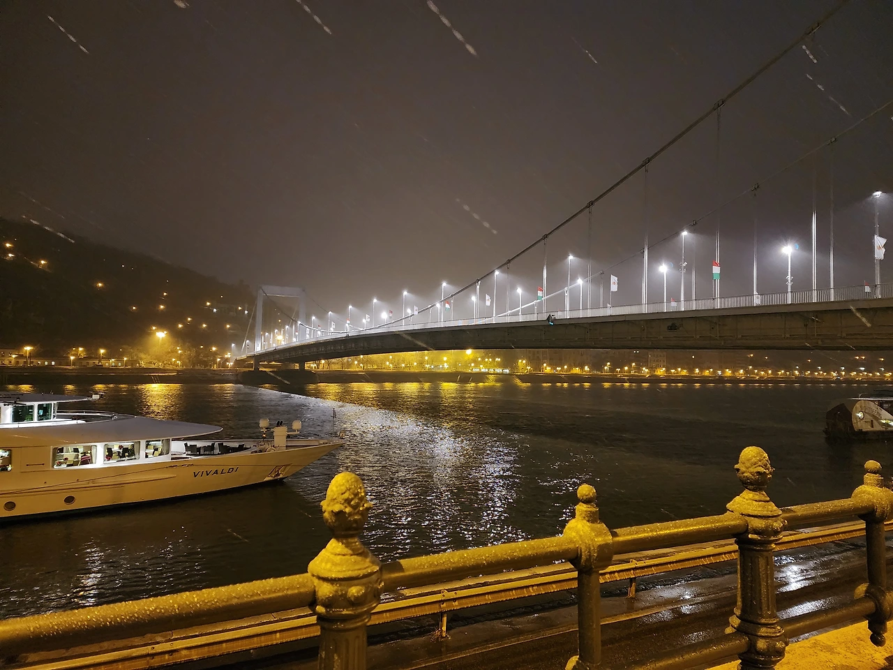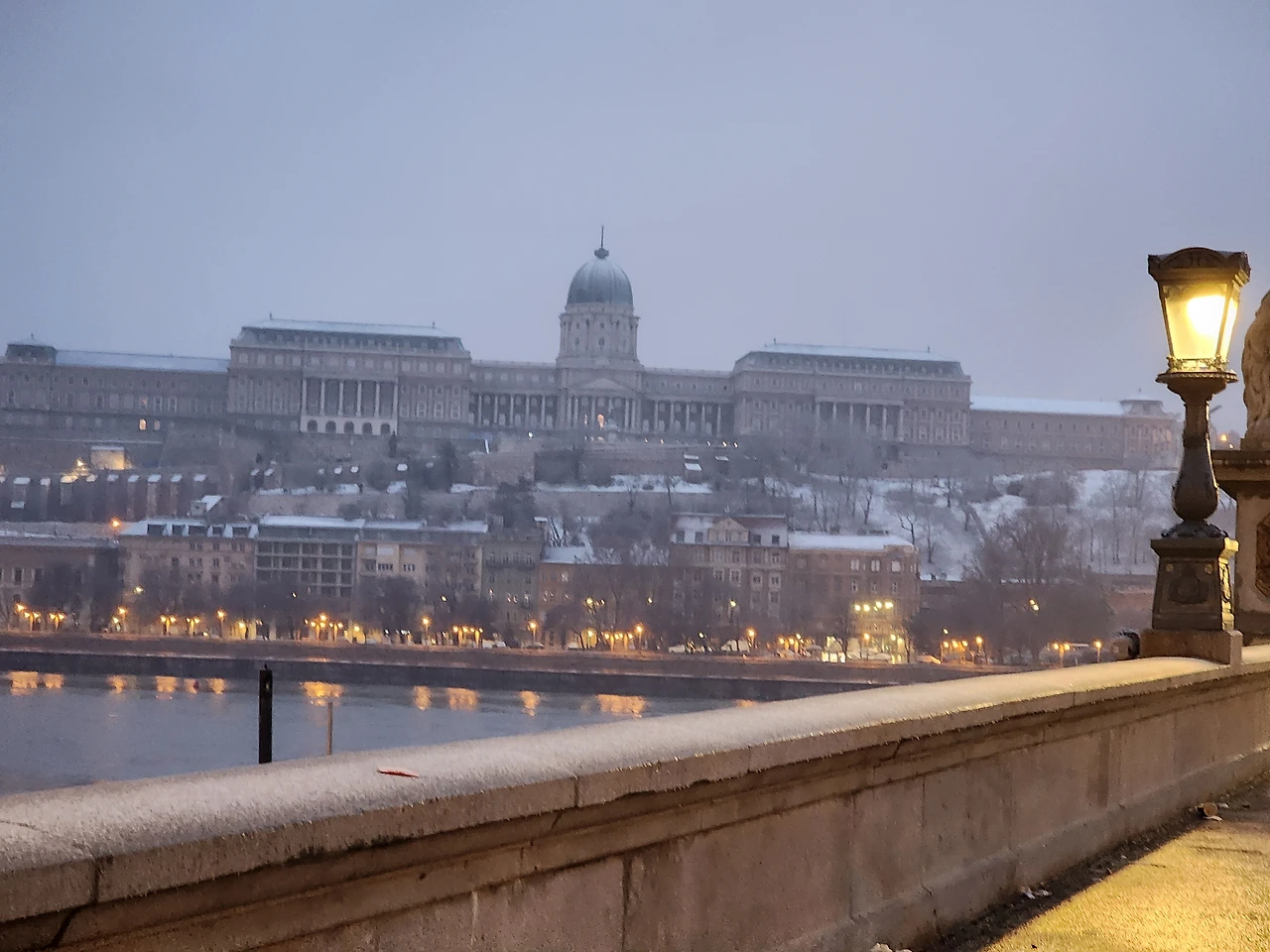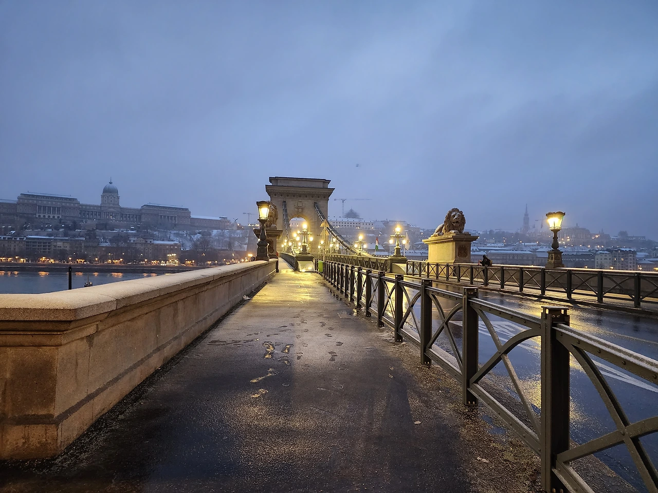 숙소를 떠나 두 개의 다리를 지난 뒤 세 번째 다리가 범상치 않은 모양을 하고 있었다. 세체니 다리였다. 다리를 건너면서 제법 많은 사진을 찍고 중간쯤 오자 건너편 언덕에 또 심상치 않은 웅장한 건물이 보였다. 눈이 많이오고 어두워서 시야가 그다지 좋지 않았다. 하지만 규모로 봐서 부다성과 궁전이 분명했다
