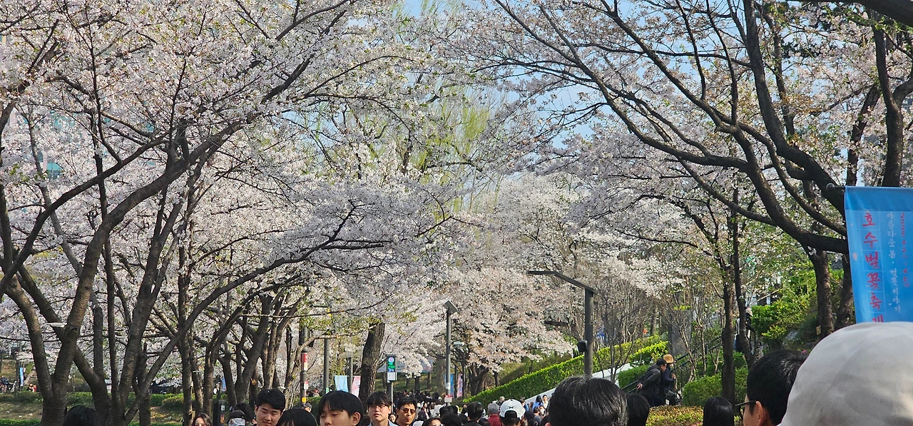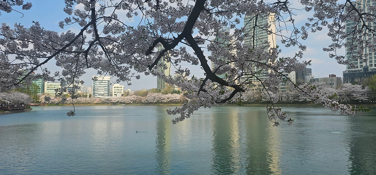 이왕 나온 김에 봄을 더 느끼고 싶어 잠실 석촌호수로 갔다. 강과 호수, 높은 빌딩, 그리고 꽃이 어우러진 곳이다. 평일인데도 사람이 정말 많다. 한껏 예쁘게 꾸미고 와 연인들끼리 손을 잡고 즐거운 시간을 보낸다. 외국인도 많다. 모두들 사진 찍기에 정신이 없다. 나도 몇 장 찍어 지인들에게 보냈다.