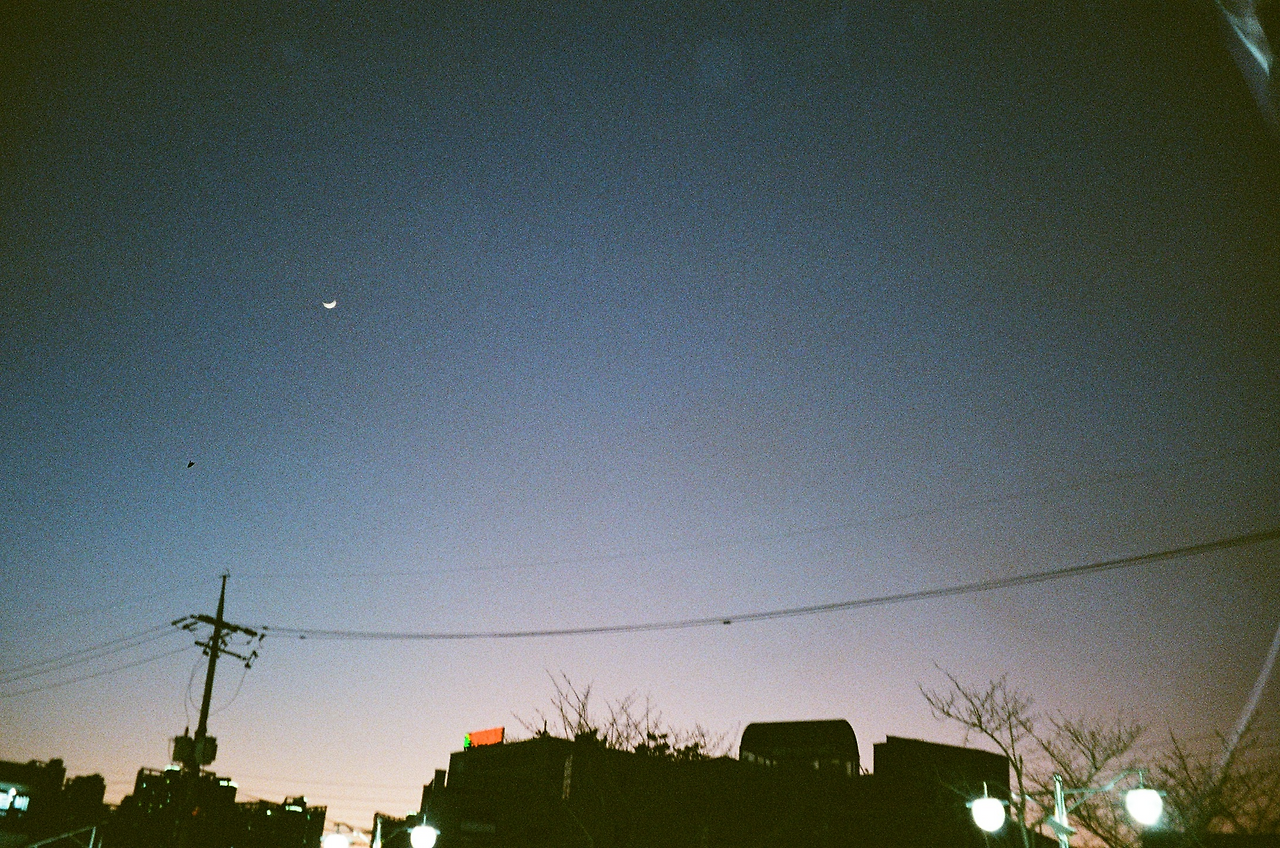 의욕이 앞서 움직인 김에 나가서 공원도 뛰다 걷다 해본다. 저 멀리 달이 보이고 더 가까이서 보기 위해 걸음 내디뎌보지만 내가 이 지구에서 뛴 다고 얼마나 가까워질까 싶어 웃음이 나온다. 그래도 아까보다 13.7m 정도는 가까워지지 않았을까? 하는 마음에 달을 향해 똑바로 서본다. 이런 순간에만 하는 의식을 치러본다. 성호를 긋고 두 손 모으고 눈을 감고 그 순간만큼은 아무것도 의식하지 않으려 노력한다. 마음으로 빌고 온 영혼으로 염원해 본다. 좋은 사람들과 좋은 인연 만들고 좋은 사랑을 하고 싶으니 나 스스로 일어설 수 있는 힘을 달라고 말이다. 오늘은 특별히 무탈한 일상에서 느껴지는 권태로움에서 벗어날 수 있게 해 달라는 항목을 추가했다. 불평하는 마음을 품고 있는 쪽이 병들어감을 이제야 실감했기 때문일지도 모르겠다. 다시금 달을 눈에 담고 마무리해 본다.