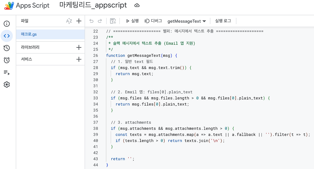 처음엔 Make나 Zapier 같은 자동화 툴을 써볼까 했다가 생각보다 금방 만들 수 있을 것 같아서 직접 만들기로 했다. Google Apps Script로.