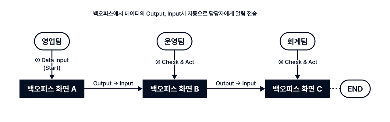 - 여러 툴을 오갈필요 없이 하나의 백오피스 내에서 프로세스가 핸들링될 수 있도록 업무를 시스템화한다.