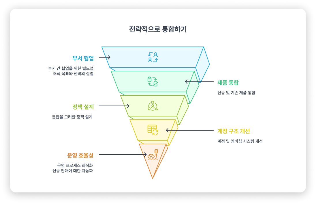 현재는 기획해야 할 과제가 크게 늘어난 상태다. 이전에 세웠던 전략들을 기반으로 여러 부서와 협업하며, 새로 출시되는 제품과 기존 서비스가 ‘강결합’되는 방향으로 정책과 계정 구조를 설계하고 만드는 프로젝트를 진행했다. 이 프로젝트에서는 제품 간 시너지를 최대화하는 동시에 운영의 효율성을 높이는 데 초점을 맞추고 있다.