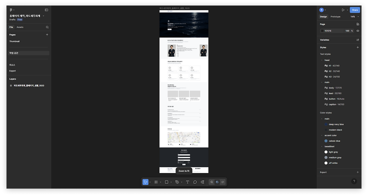 무엇보다 중요한 것은 지인(세무사)과의 인터뷰였다. 어떤 서비스와 강점을 드러내야 하는지 이야기를 나누며 홈페이지의 구조를 잡는데 참고했다. 후에 세무회계사가 법인으로 전환하고, 조금 더 관리하는 콘텐츠가 많아지면 그때 홈페이지의 사이트맵을 세분화하면 될 것 같고, 현재는 단일 페이지로도 충분하다고 판단했다.