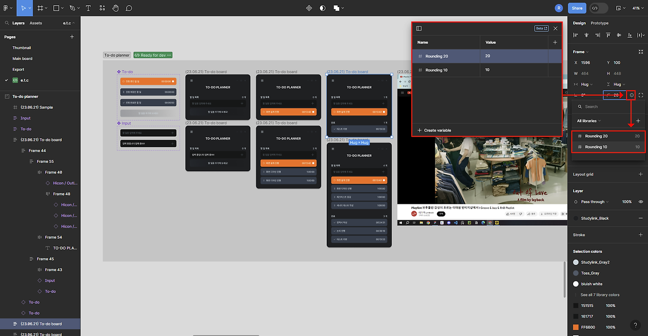이 Variables은 결국 데이터 단위의 컴포넌트와 같은 역할을 수행하는 것 같은데, 이 때문에 피그마는 Variables에 입력된 값들을 나중에 인터랙션에도 활용하는 것을 고려하여 기능을 개발했다. 이 원리에 익숙해진다면 마스터 컴포넌트를 활용하는 것만큼 생산성을 분명 더욱 향상시킬 수 있을 듯.