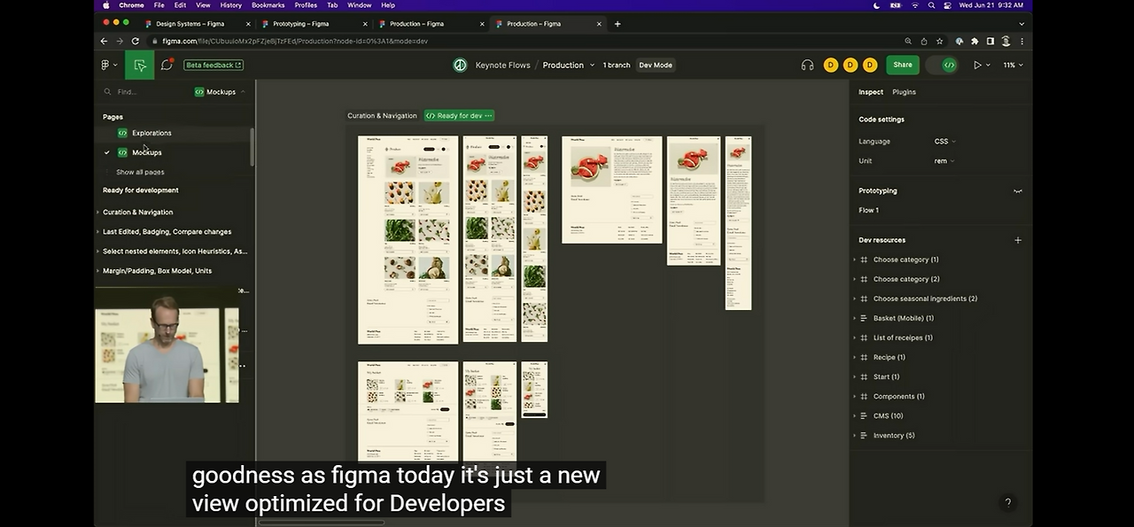 오프닝 세션의 2부는 피그마의 CTO, 크리스 라스뮤센이 진행한다. 2부의 내용은 개발자 모드(Dev mode). 기존에는 일반 디자인 화면을 개발자도 확인해야 하니 불필요한 정보들까지 확인해야 하는 경우가 많았는데, 깔끔하게 개발자가 확인을 하면 되는 정보들만 추려 보여주는 모드를 피그마가 새로 업데이트했다.
