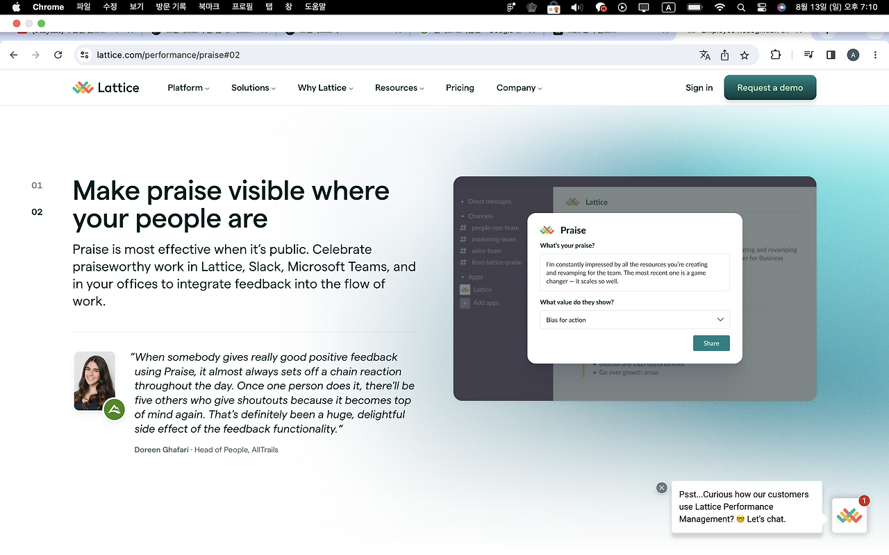 외국 솔루션 Lattice에서 제공하는 Praise 기능 ⓒ Lattice