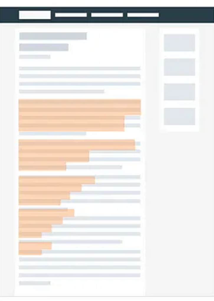 2. 이후 사용자들은 페이지를 약간 아래로 이동한 다음, 이전에 이동한 것보다 더 짧은 영역을 수평 이동하며 컨텐츠를 읽는다. (F 문자의 중간 막대)