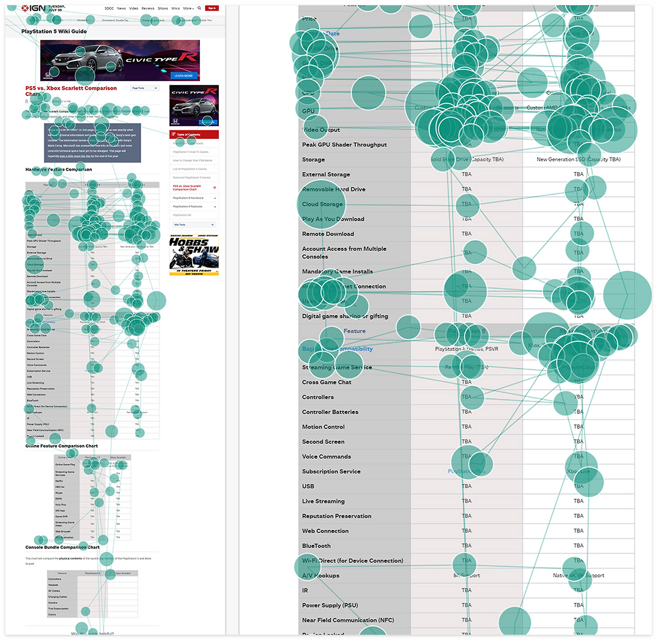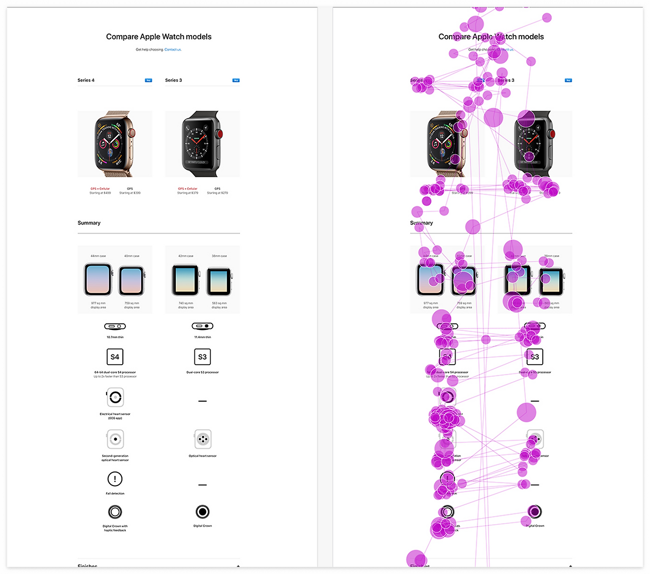 일반적으로 도표나 셀 등을 통해 정보를 얻을 때 주로 발생하는 스캐닝 패턴인데, 사용자가 비교 테이블을 두 개 놓고, 다른 제품이나 서비스를 적극적으로 비교할 때 이 패턴을 보일 수 있다.