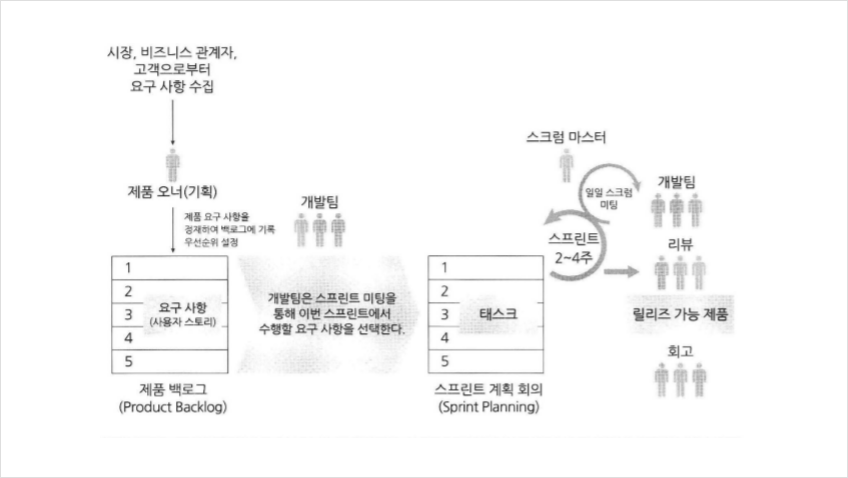 조대협의 소프웨어 개발과 테스트 그림 1-5 스크럼 방법론 개념 ⓒ 조대협 님 블로그