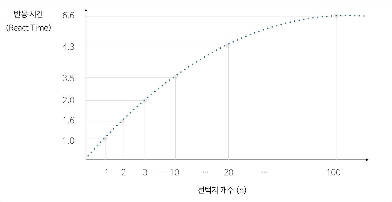 이처럼 하나의 화면 속에서 취할 수 있는 선택지가 많은 것은 제품의 복잡성을 높이며, 이로 인해 사용자가 인지하기 위한 비용을 증가시킬 수 있다. (힉의 법칙)