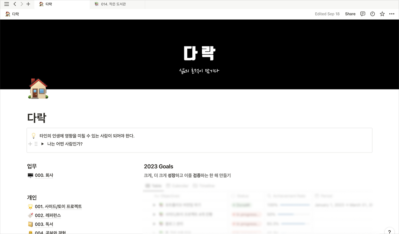 올해 초에 정비했던 노션 공간 ⓒ 327roy