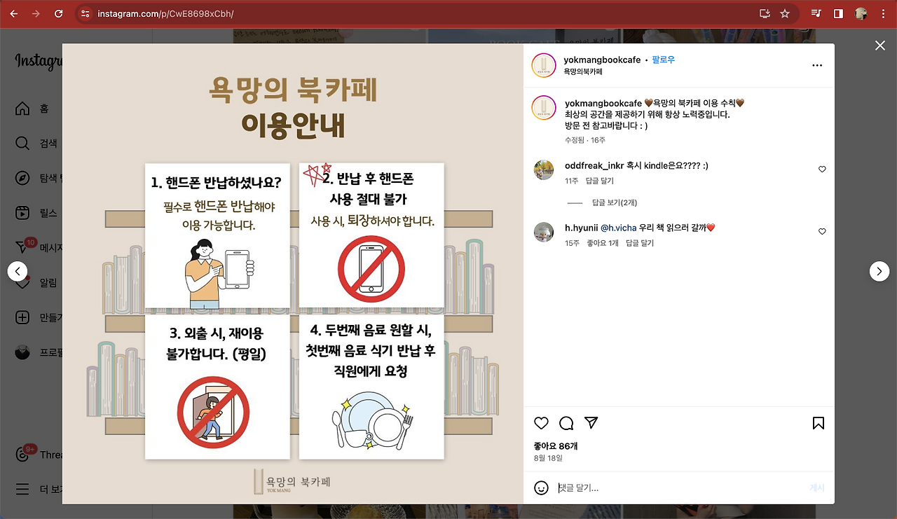 최근에 인스타를 하다가 강남에 위치한 '욕망의 북카페'라는 카페의 바이럴 영상을 봤다. 테이블에 비치된 잠금 통에 폰을 넣어 두면 잠금 통에 설정한 시간만큼 폰을 사용할 수 없고, 이 때문에 강제로 독서에 집중해야 하는 형태의 카페다.
