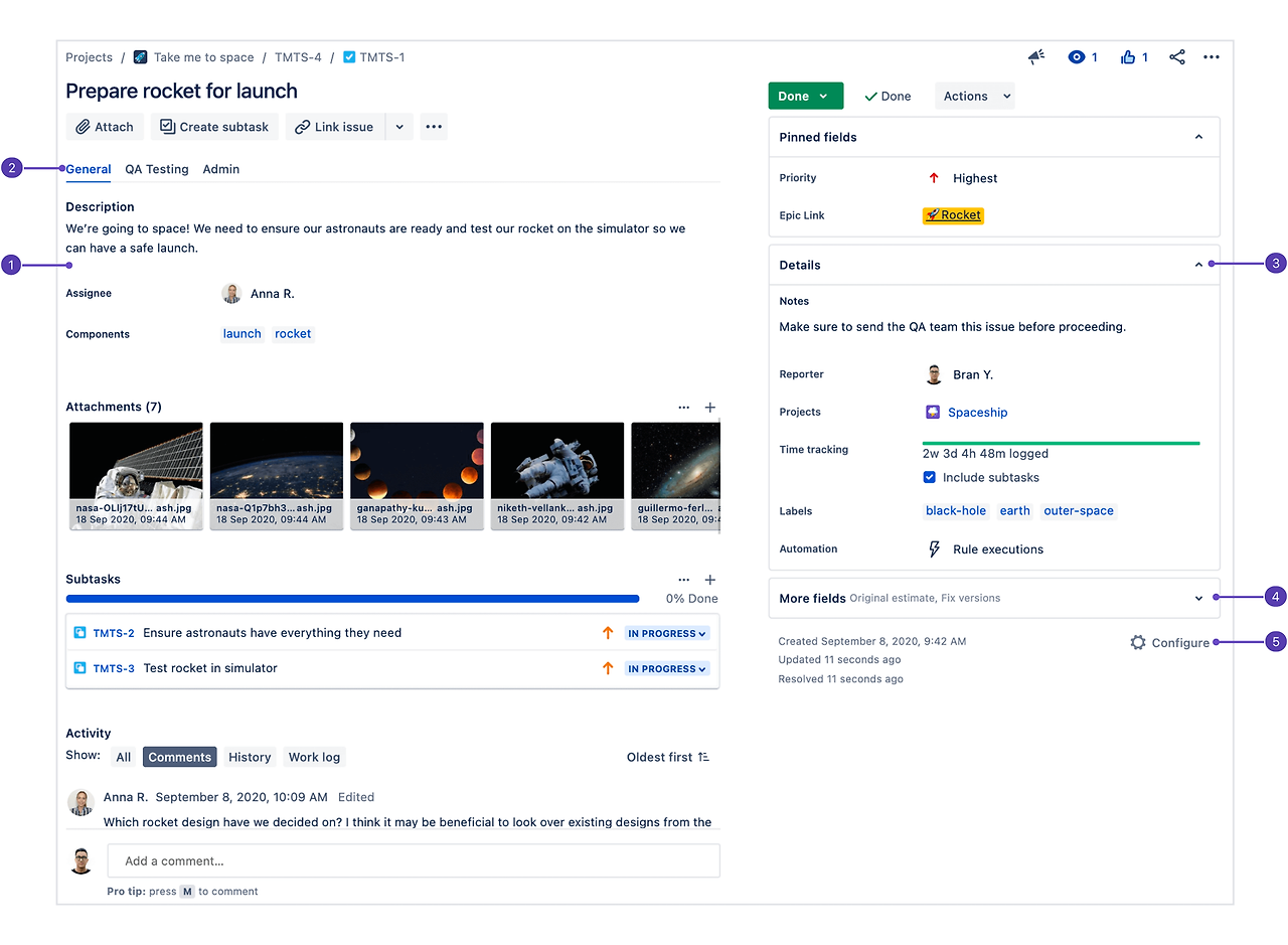 - 조직별로 일련의 규칙을 정하는 게 좋다. 나의 경우, 기능 개발을 위한 에픽 이슈를 생성하면, 하위에 ‘[기획] OOO 기획서’라는 하위 작업 이슈를 생성한다. 대괄호 등 특정한 구분값을 넣어둠으로써 지라의 대시보드, 리포트, 컨플루언스 등에서 자동으로 추적할 수도 있다.