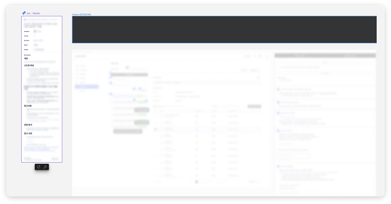 그래서 제품 개발과 관련된 모든 자료를 개발 목표를 의미하는 지라의 티켓에 첨부하고, 이를 팀원에게 학습시키는 편이다.(보통 '에픽' 타입 이슈를 활용한다.) 피그마에 화면 설계서를 만든다면 그 옆에 지라 위젯을 사용해 티켓을 첨부하고, 지라 티켓엔 화면 설계서 등 관련 문서를 모두 링크한다.