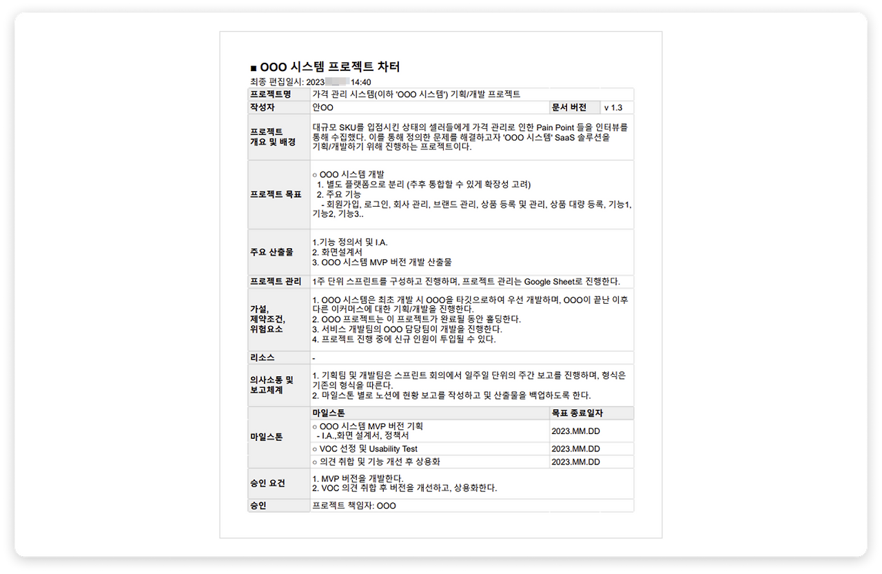 예전에 작성한 프로젝트 차터 샘플 ⓒ 327roy