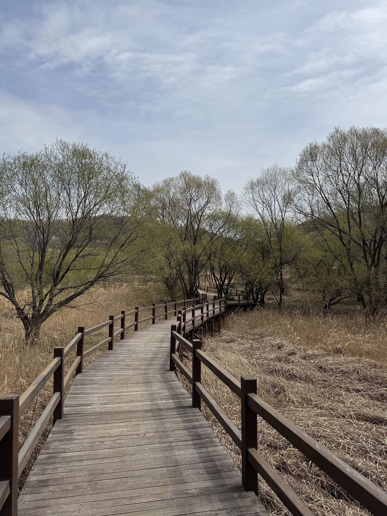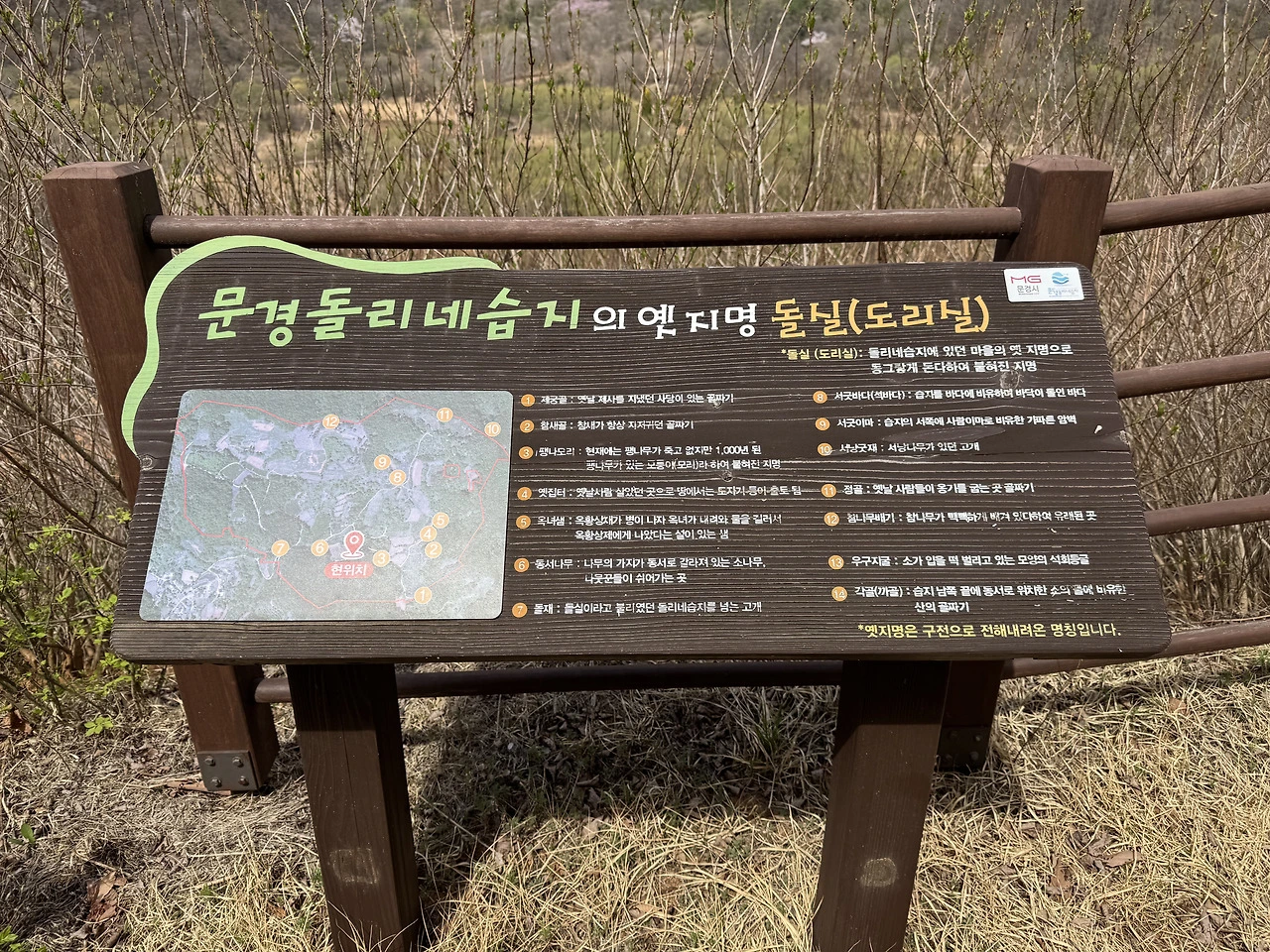 문경돌리네습지를 걷다 보니 봄을 맞은 꽃봉오리와 여름으로 가기 위해 새순이 돋은 버드나무가 보인다. 들판에 남아있는 억새를 보니 지난가을 바람과 함께 흔들리던 모습이 상상이 된다. 산 능선에 눈이 내려앉은 풍경도 보고 싶어진다.