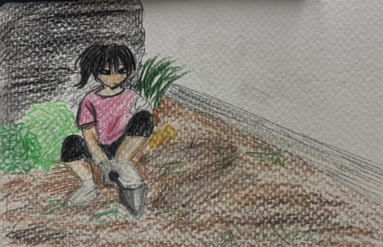 아빠는 어디서 주워왔는지 돌을 모아서 흙 주변에 테두리를 해주고 엄마에게 약속한 텃밭을 만들어 주었다. 흙을 삽으로 여러 번 뒤집어엎더니 봉긋한 밭모양을 만들어 주었다.