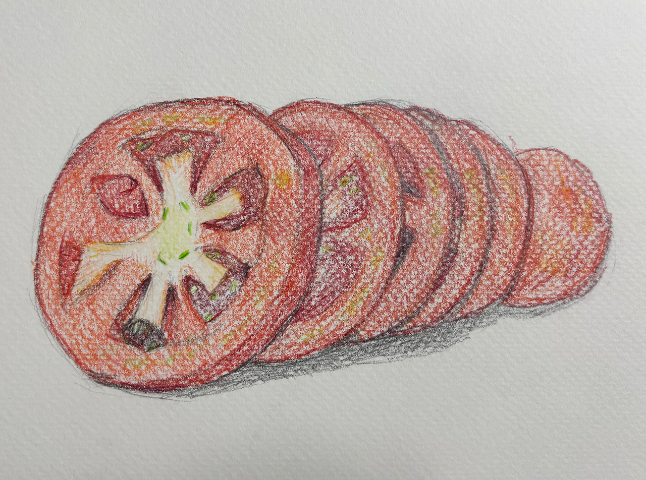 토마토를 얇게 자른 뒤 엄마는 설탕을 뿌려주셨다. 그러면 동그랗고 얇은 토마토에 설탕이 적당히 들어가 맛있고 시원했다.