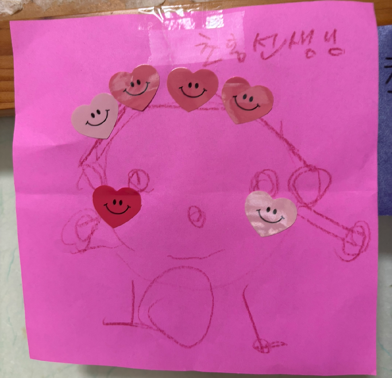 졸업할 때가 다가오니 아이들의 그림 실력은 점점 늘어났다. “선생님 그려줄게요”하고 말하더니 “너무 귀엽게 그렸죠?”하고 말한다.