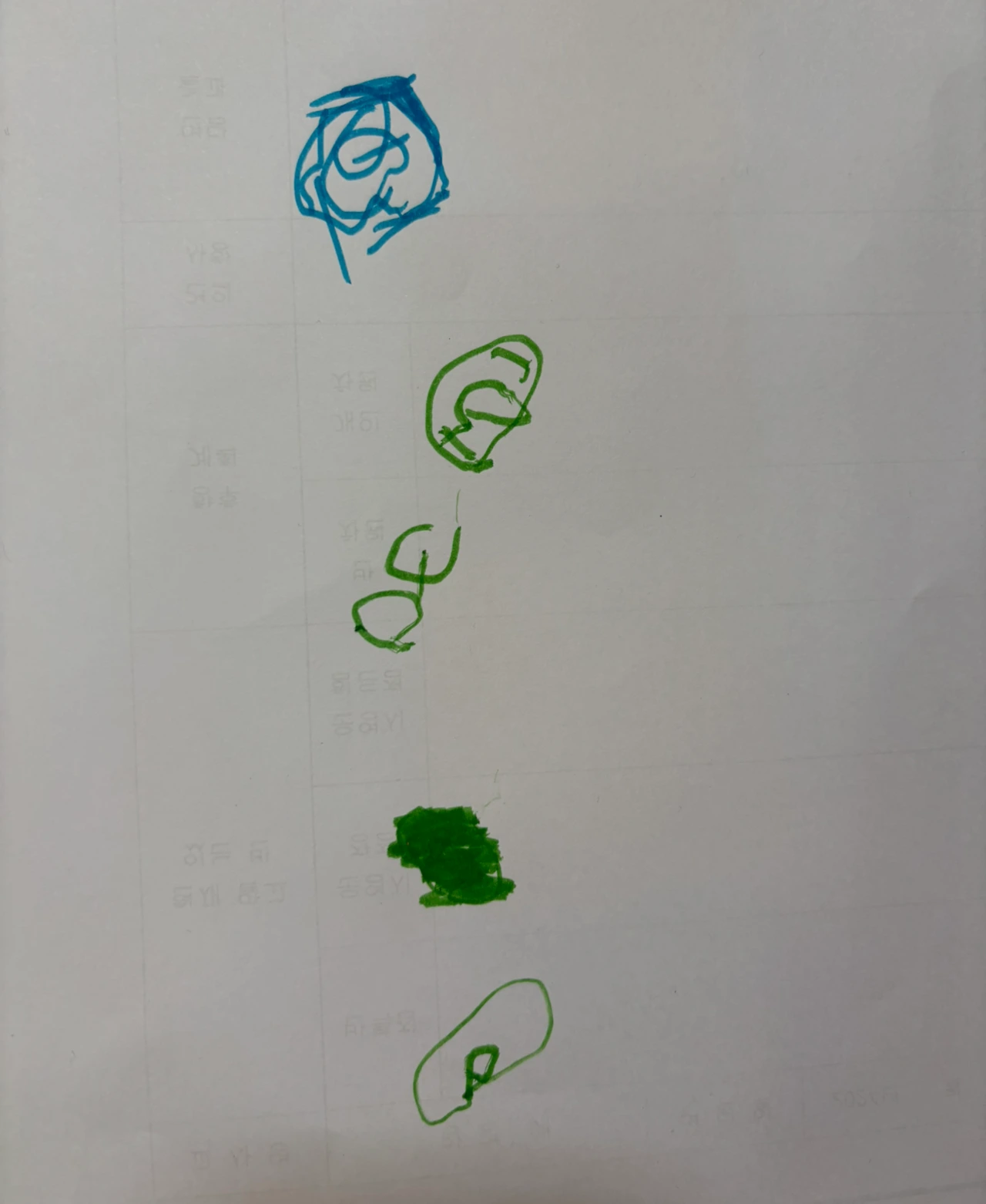 다른 반 교사를 그린 것은 동그라미가 조금 더 길었다. 내가 살이 쪄서 그런지 유독 동그란 모양이었다. 이상하게 나랑 닮은 그림에 웃음이 나왔다.