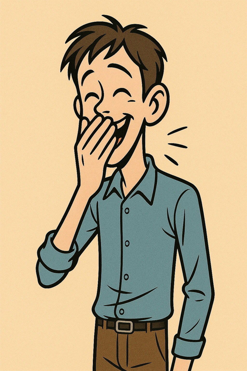 부끄러움이 많아 입을 가리고 웃는 남자.