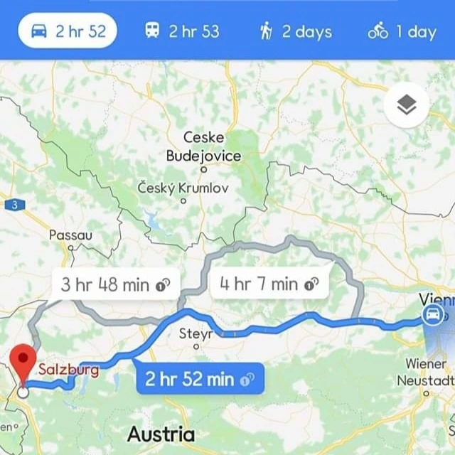 빈에서 잘츠부르크까지 운전, 대략 3시간 소요