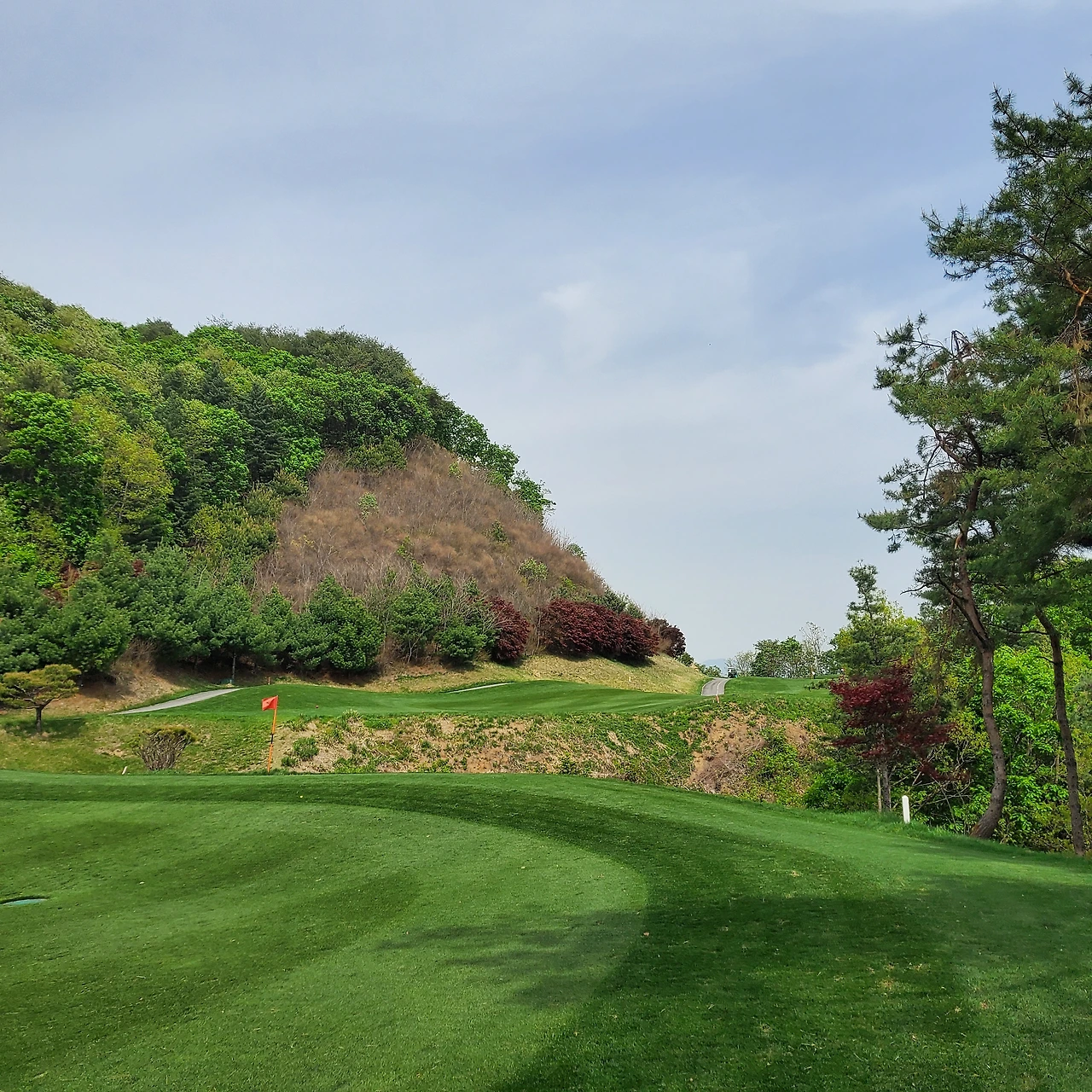 첫 홀이 시작되며 산악 지형 구장의 위엄에 다들 조금 긴장되었지만 더욱 긴장되는 건 우리가 서로 처음 필드에서 만났다는 것이었다. 모르는 사람, 아니 필드에서 처음 보는 사람과의 라운딩은 정말 긴장 그 잡채.. 쫄깃함이 최고도이다. 작년 데뷔시즌 거의 첫 홀 첫 티샷의 성공률이 1할에 못 미치지만 겨우내 연습을 (첫 홀 티샷 이미지 트레이닝?) 많이 했으니,라고 기대하며 올시즌 개막 때에도 죽기는 했으나 그래도 미스샷은 아니고 쭉 뻗어 나가는 샷에 자신감도 약간 있었다, 하지만 이놈이 바로 또 티박스 앞 해저드에ㅠ 다행히 그다음 홀부터는 그래도 쭉쭉 뻗어나가는 티샷에 마음의 안정이, 죽은 경우도 있지만 바위 맞고 들오는 경우도 있었다.